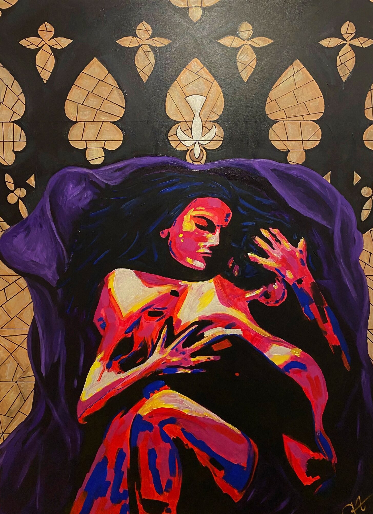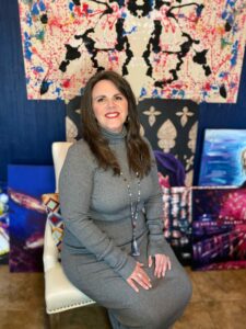 I have always been a creative, imaginative person. As a kid, I was quite shy and awkward and kept to myself. It wasn’t until much later in life that I realized I was on the spectrum and I had synesthesia. All I knew at the time was that I wasn’t like everyone else which made it so hard to fit in anywhere. This gave me a lot of motivation and time to teach myself embroidery and to draw. As I got older, I continued to learn new crafts and started dabbling in painting but I didn’t consider making it a career until later in life. Instead, I got a management job and then eventually got married and became a full-time mom. After my second child, I became severely ill and could no longer work a nine to five job. I was diagnosed with several conditions and it prevented me from living a normal life. I did my best to raise my family and continued my artistic pursuits to cope with life. Once my youngest graduated from High School, although still ill, I began to devote myself to seriously studying art and started drawing or painting every weekday. I took a lot of online classes and practiced every medium I could get. I practiced a lot of different styles of art trying to find my voice. I fell in love with acrylic and oil pastel as my primary mediums. However, I have a secret love affair with watercolor. I try to incorporate my experiences with synesthesia in as much of my art as possible to give the viewer a glimpse inside my world. I devote all my time to art and to knitting. If art is my therapy, knitting is my Zen. I have Fibromyalgia and Secondary Adrenal Insufficiency as well as something called Dercums Disease. As a result, I am in constant pain and spend a lot of time convalescing. Art and knitting keep me sane and help me feel like a productive member of society. I guess that is why I pursue it with such passion. It brings meaning and purpose to my life and gives a voice to my neurodivergent brain.
