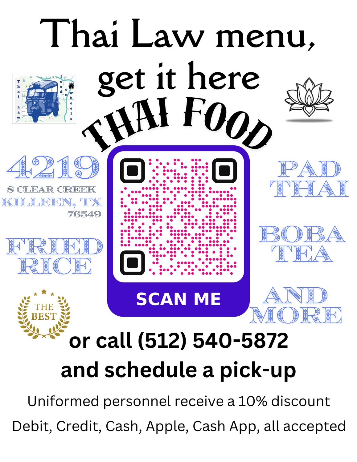 Retired from the Army and my wife ending her job on Ft Hood, we talked one night and decided to look into selling Thai food. Further discussion revealed running a food truck would be fun so in the same conversation we started to look for a suitable truck. Read more>>