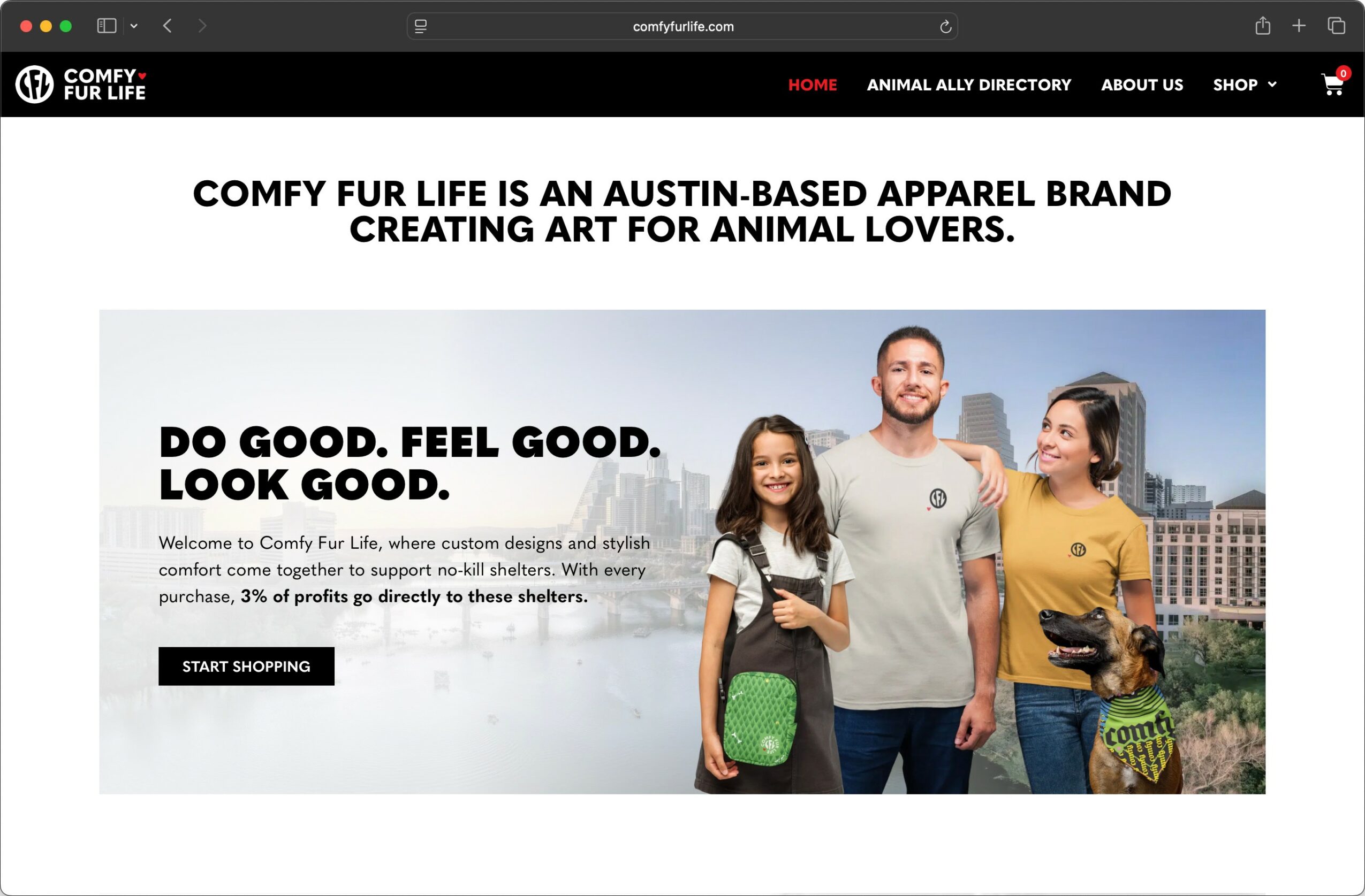 Outside of Blue Cape Digital, my business partner and good friend Blaine and I started Comfy Fur Life, an Austin-based apparel brand that’s become a fun, creative outlet for both of us. It’s our way of combining art with our love for animals. We donate 3% of every purchase to no-kill shelters, and for special partner collaborations, 100% of the proceeds. It’s a passion project that brings us joy and gives back in a meaningful way.