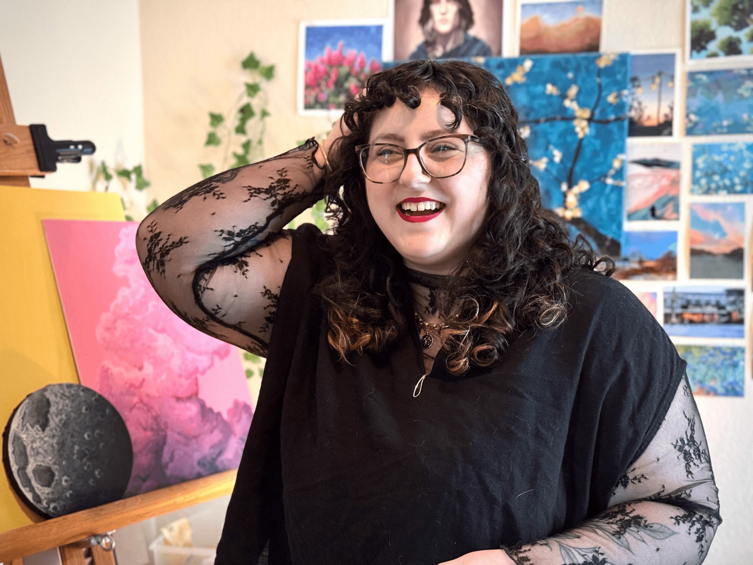 As a small business owner, I thank you for this question! There’s so many ways to support. You can share my work or content or just reach out and say hello! If you want to see behind the scenes studio vlogs, or more of myself, you can subscribe to my YouTube channel. If you’d like to commission me, I take inquiries on my website. And of course, if you’d like to purchase an original or print, that can be done on my website or any of my social media channels. I’d be thrilled to hear from collectors or supporters in any capacity.