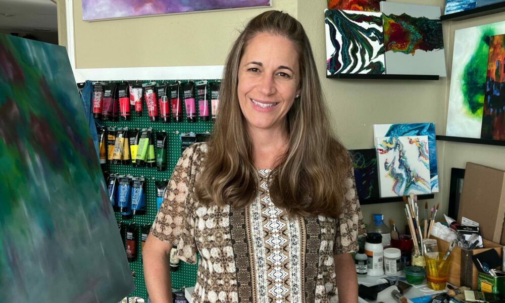 I started painting over 25 years ago – I took my first painting class (intro to oil painting) while getting my masters in Mechanical Engineering at UT Austin. I just wanted to hold a paintbrush, so I registered for that class. Then life got busy. I moved to Philadelphia so my then-boyfriend could get his MBA, I got married, I moved back to Austin, and I had 3 kids — I continued to paint and take various painting classes fitting it in when I could. At that point in my life, the painting was a gift, something just for me, because I was pulled in so many directions. Now it’s 2010, and my Mom is sick, so she and my Dad moved to Austin from Florida for a support system (3 of my siblings live in the area – I am one of eight kids!). Now my days are getting kids on the bus, taking care of my parents from 9 am-3 pm, meeting the bus, making dinner, helping with homework, and driving to kids’ activities. Finding time to paint was hard. And it got harder because now my Dad is sick too. At this point in my life (2013), I leaned into painting – counterintuitive because I had no free time. But I found that if I spent time painting, I could sleep at night without racing thoughts at 3 am about all the “what if’s” with my parents’ health. I think painting turned off my brain’s STEM and analytical side, and I’d flip to my right brain when I painted. So I sought out painting to balance the highs and lows of life. I also painted my feelings through colors. My parents died within 11 months of each other in 2016/17. I started painting more; some of my paintings were sold and found homes in friends’ and families’ homes, but in general, I wasn’t interested in putting myself “out there” because I was afraid the feedback would take away from why I painted (I painted for me). In January of this year, I decided to launch my art business after I showed my artwork to a gallery owner I randomly met at a hair salon, and he loved my work! I also decided I didn’t want to be 70 years old and not have tried to showcase or share my passion for painting. Plus, I had a lot of paintings taking up a lot of space in my house. 🙂