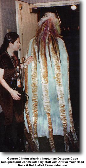 Mott Leonino Designed & Constructed the Silver Velvet “Neptunian Octopus Cape” worn by George Clinton at his Induction Ceremony into “The Rock & Roll Hall of Fame”. The incomparable *Prince* inducted George,along with Parliament Funkadelic, & Bootsy Collins at the Rock Hall in Cleveland, Ohio.