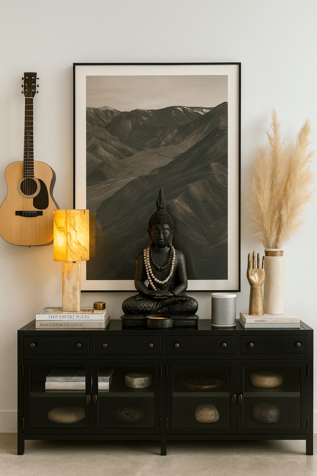 The process begins with getting crystalline clear about vision—not just for a space, but for a life. What are you building toward? What matters most? Who are you becoming? Then we translate those aspirations into the physical environment through carefully chosen art, objects, and focal points that align with that future self. It’s about creating spaces that don’t just look beautiful, but that subconsciously remind you daily to move toward your deepest goals.