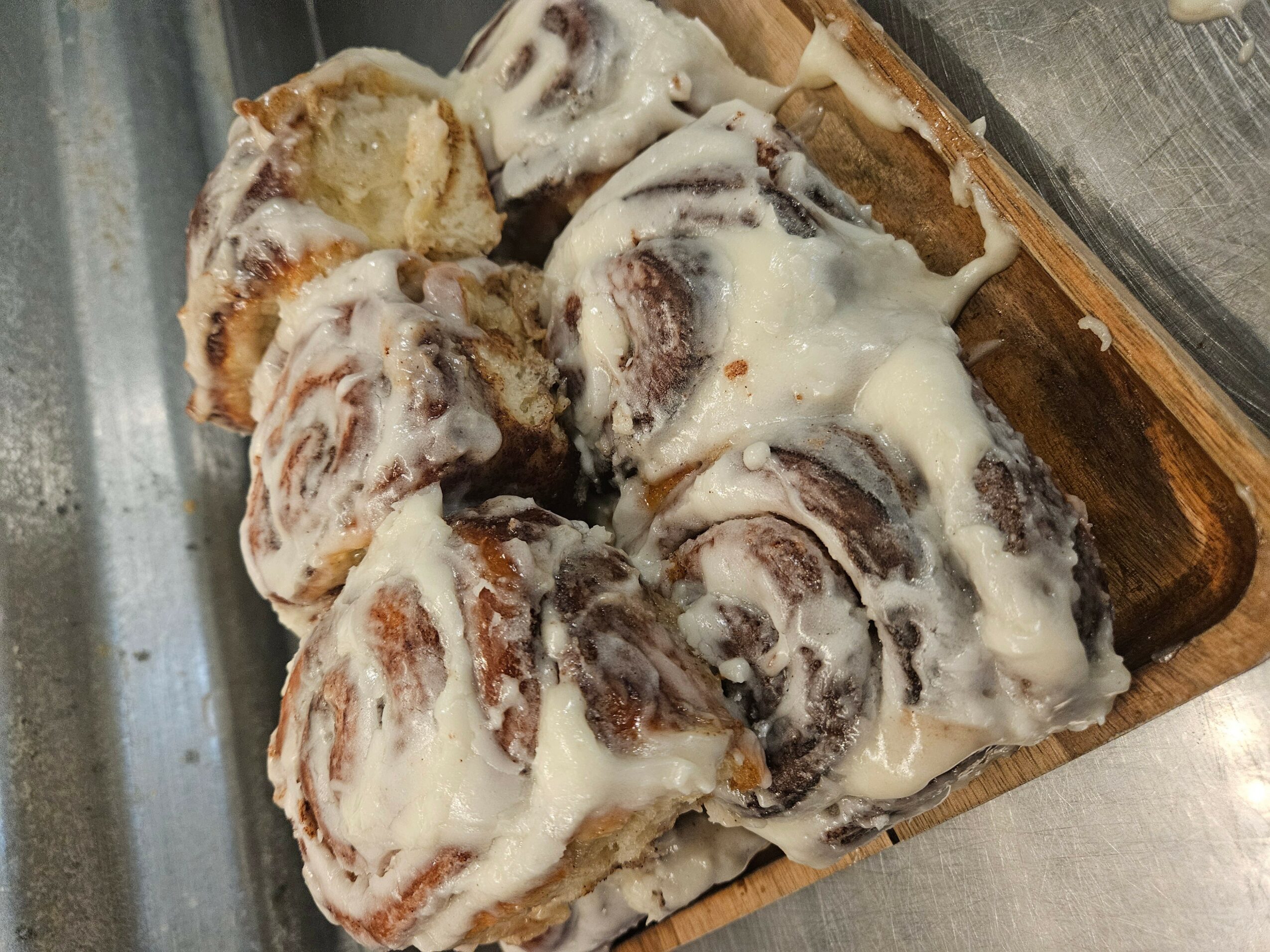 I believe what sets us apart from others are 2 things, first being made from scratch, we don’t order things in and make them pretty, we MAKE them and then make them pretty. We of course have mixers, a proofer, stove and ovens but that’s the extent of our machine equipment. Our cinnamon rolls, are mixed, rolled and shaped by hand. The second item would be us; we love our customers both new and returning. We like being a small part of people’s lives, knowing what’s going on with their jobs, kids, neighbors, animals etc. It is amazing knowing we are helping bring back “old school” customer service, we know your name or your order or what’s been happening in your life.