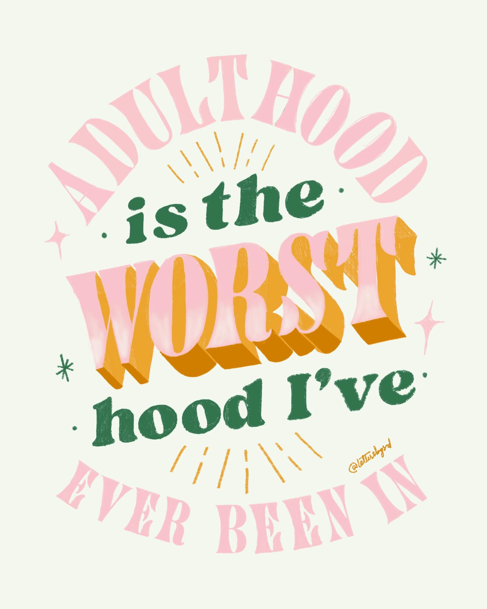 I’m a visual designer with a passion for hand lettering. My Instagram account, lettersbysid, showcases my signature style of blending witty, sarcastic quotes with playful illustrations and handcrafted lettering. I’m particularly proud of my ability to infuse personality and humor into every piece. What sets my work apart is my unique approach to combining typography and imagery, creating visually striking and emotionally resonant designs.