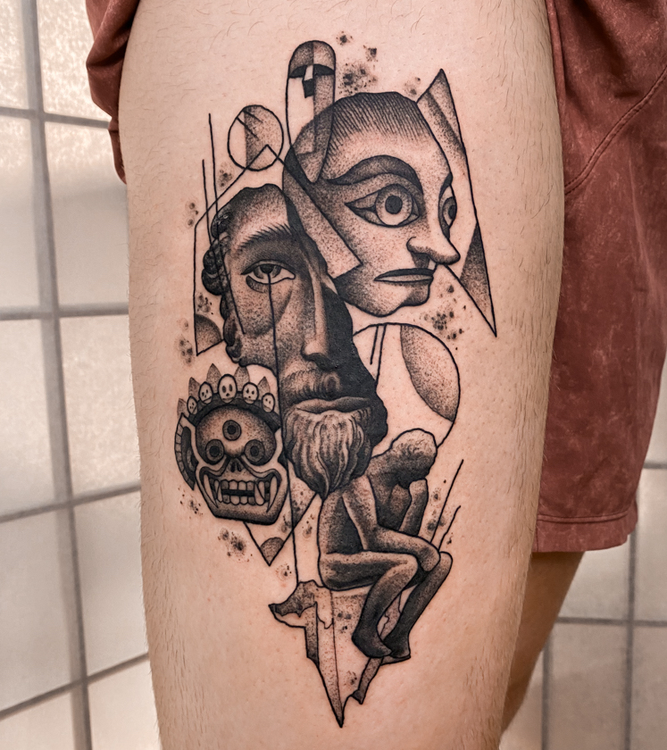 Tattooing, oddly enough, has been key to helping me grow as an artist. It forced me to establish a process that’s efficient and reliable—everything from drafting to executing. Working with a live canvas, tattooing may be the only art form where time is truly of the essence. That sense of urgency helped me develop a system that I now use for all my creative endeavors—whether it’s designing t-shirts, album covers, or murals. It’s my way of breaking through creative blocks and staying productive.