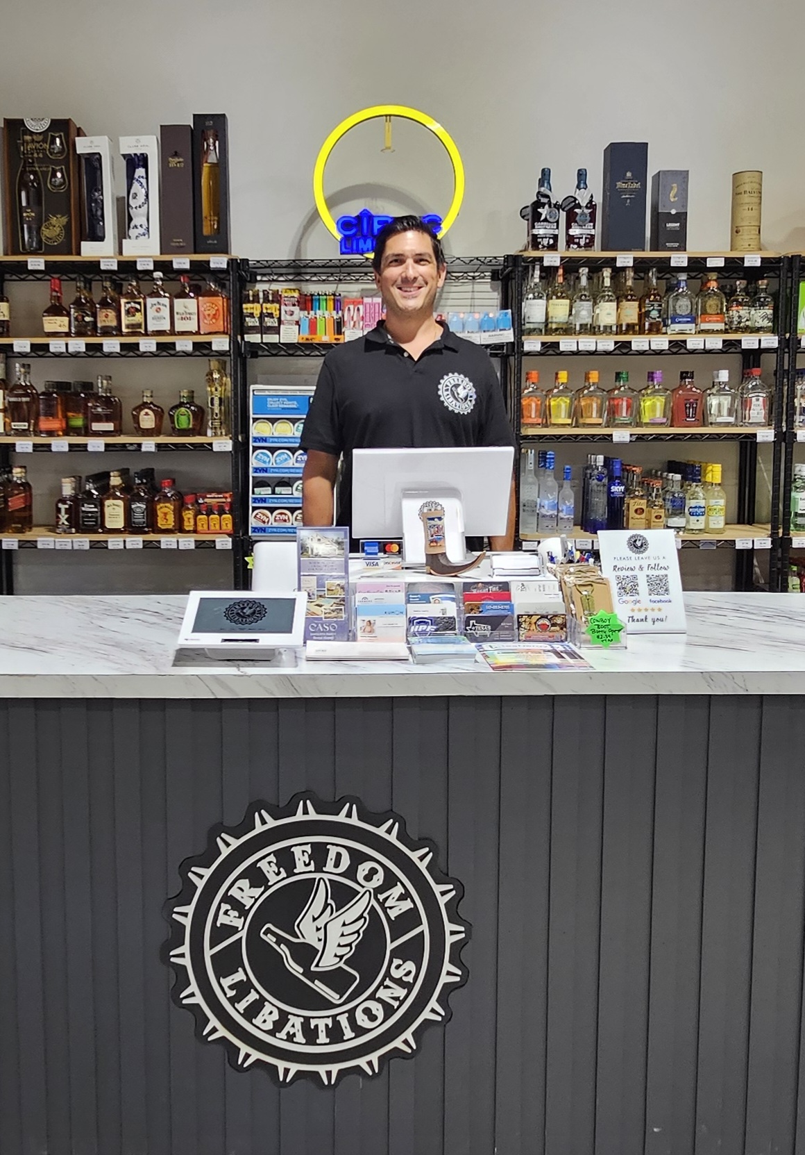 One thing that may surprise people is that Freedom Libations is completely run by the two of us. From the very beginning, we handled every step ourselves, from forming the LLC and designing the store to bookkeeping, operations, and daily management. Daniel spent his life working in liquor stores but also earned his bachelor’s degree in public administration before ultimately choosing to follow his passion for the industry. Dana is entirely self taught on the business side and spent extensive time learning everything from licensing to accounting.