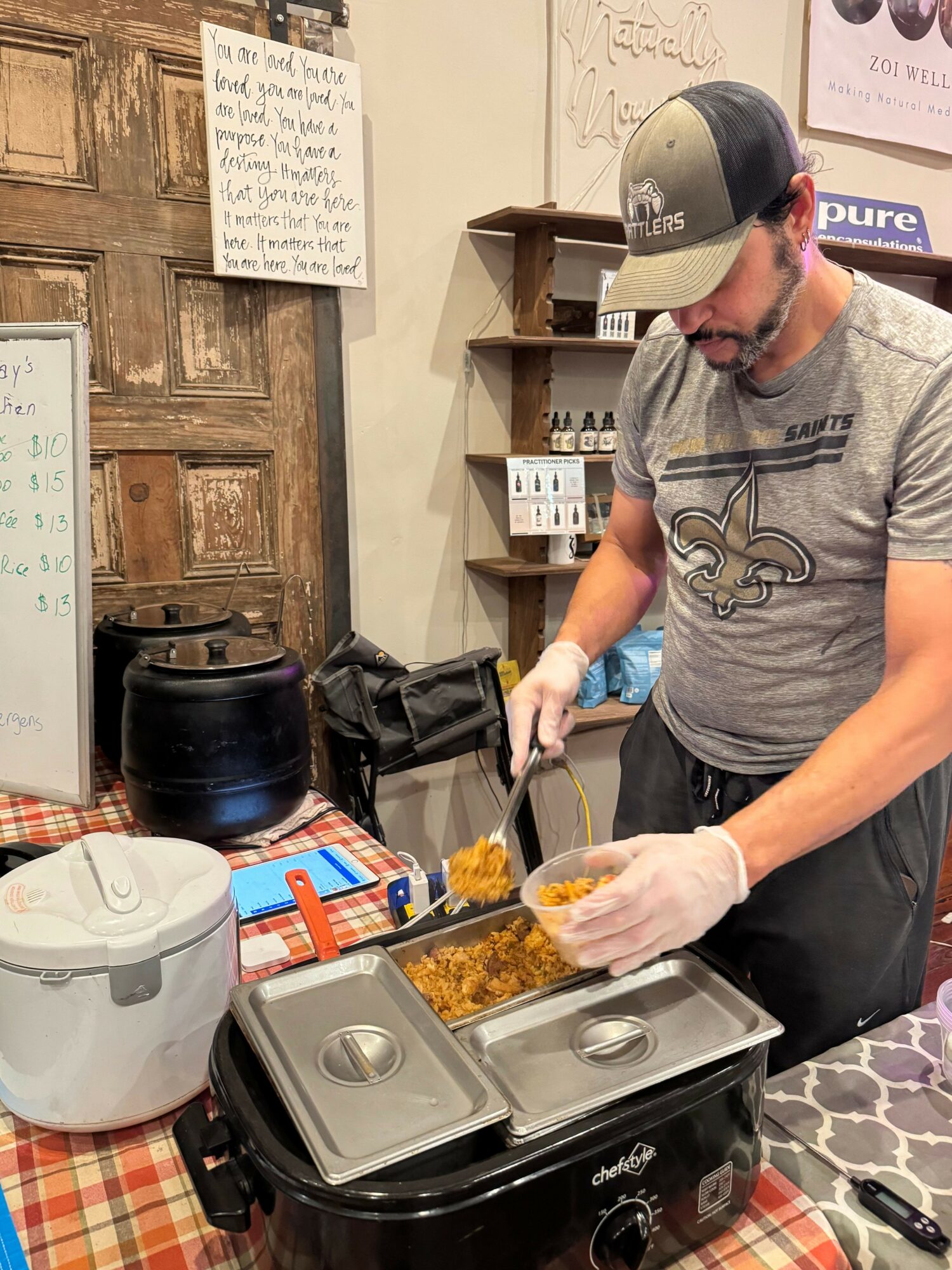 I provide authentic New Orleans cuisine, utilizing my grandmother’s recipes. I specialize in traditional Creole flavors. When native Louisianians visit my trailer or, at the farmer’s market on Sundays, they are often pleasantly surprised by the authenticity of the flavors. They can tell that I’m truly from NOLA. Often times, I am quizzed on where, within the city, I am actually from. The truth is, I’m from all over. The passion and care I pour into my grandmother’s recipes sets me apart from others. Everything I make is homemade from scratch from the stocks I use to the roux and fresh cut veggies. The first dish I learned to prepare from my grandmother was seafood gumbo, and this is the one I take the most pride in. I don’t make commercial food, I make meals for families. I think this not only sets me apart from others, but this is also my greatest source of pride in my business. I want people to know and feel that when they get a meal from my trailer, they’re also getting a seat at my family table. You can always expect home made food, a smile and a warm greeting when you see us. it is our pleasure to bring a little of our home to you.