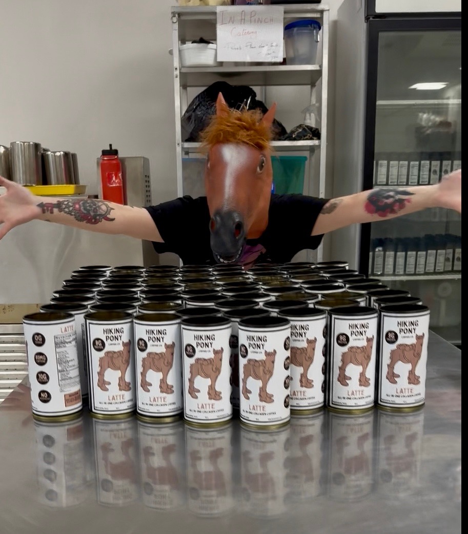 We came up with the branding from a hiking trip I did. I did a solo 4 day backpacking trip into Havasupi Indian reservation. I chose not to use a mule for my gear and hiked my pack in myself. On the trip I didn’t have coffee because campers coffee is awful and makes me feel jittery. On the way out it was brutal! At one point a train of mules went by with packs from other campers and I thought “I wish I had that energy right now!”. When I told the story to my business parters they decided it needed to be the name and my COO, Ariel Patterson drew up our adorable Pony in hiking boots. It was perfect.