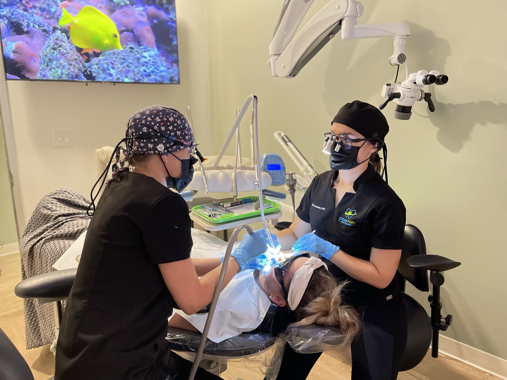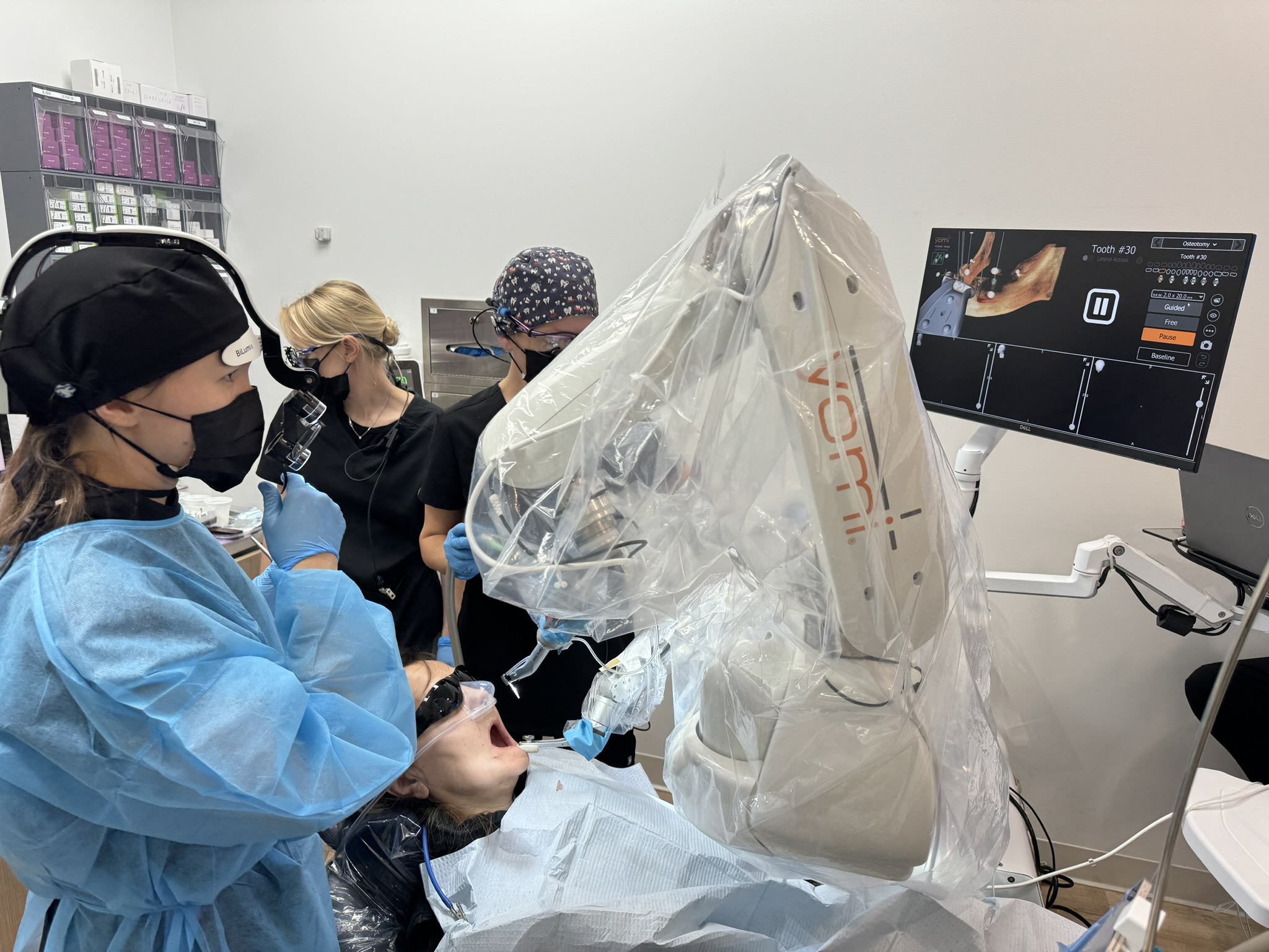 I’m most known for being one of only a handful of dentists in the world—and the only female robotic dentist in Austin—certified in YOMI robotic-guided implant surgery. This system allows me to place dental implants with sub-millimeter precision. For patients, that means less invasive procedures, faster healing, and better long-term outcomes. When people hear “robotic surgery,” they often think of large hospital systems. We’ve brought that capability to a private practice in Cedar Park.