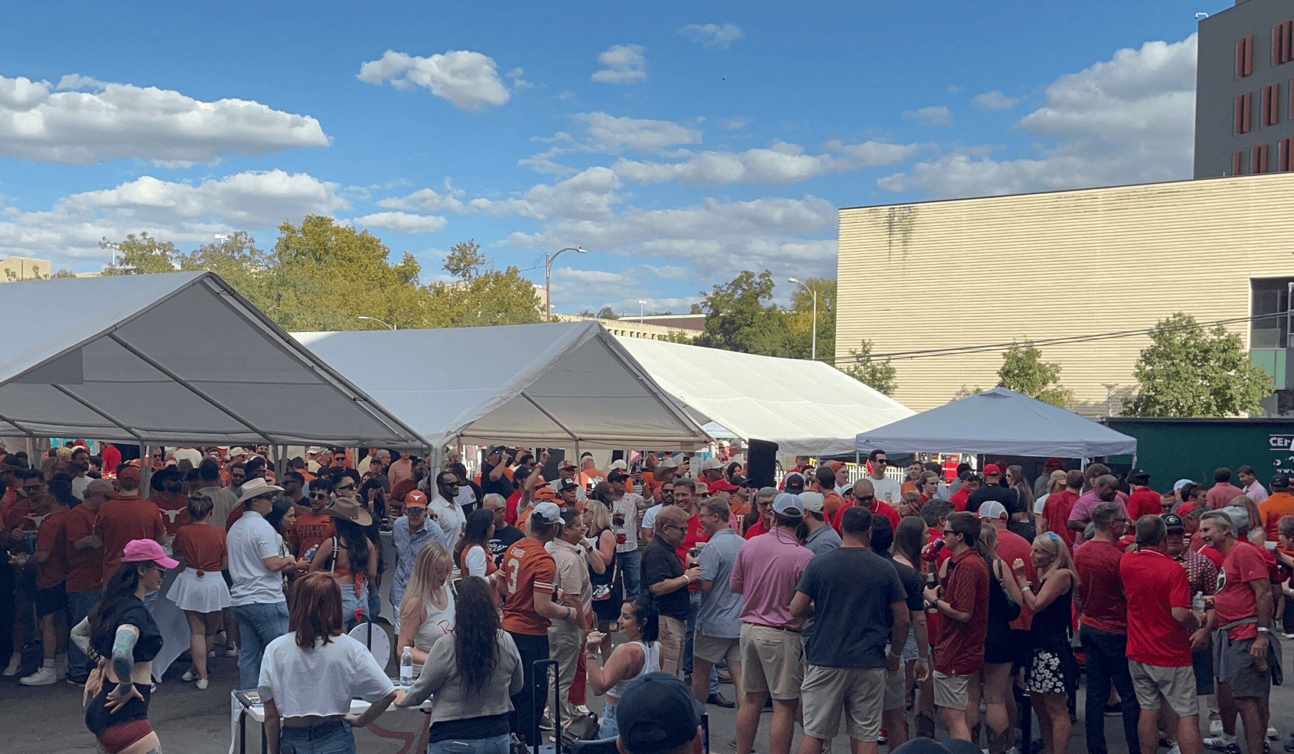 As a student at the University of Texas and an avid college football fan, my friends and I attended every home UT football game we could. We loved making fun of the other schools in the conference and always wished we could find T-shirts that expressed exactly how we felt about these other schools! Back then, you couldn’t find apparel in stores that talked trash about other schools and the ability to design and print your own shirts was pretty pricey. We came up with some designs, scrounged up some money and had about 2 dozen t-shirts printed up to sell. We found that the best way to sell these things was by walking around on gameday. That was great, but kind of a pain. So, we thought, “hey, let’s throw a tailgate.” So, we put together a small – VERY small – tailgate and tried to make sales. Pretty soon we realized the tailgate was a lot more fun that trying to hock these shirts and it seems that our friends kept coming by and just staying. Two turned into four and then four turned into ten and the next thing we knew, we had fifty plus people just hanging out. We didn’t sell any shirts, but we enjoyed the experience. So, we eventually gave up on the shirts and just enjoyed the tailgating. As the tailgate grew, the costs starting getting prohibitive, so we started asking for donations and looking for sponsors. I was amazed at how many people were willing to support the tailgate. Then it dawned on me that we could grow this thing and create a juggernaut. Here we are 24 years after that beginning and we’re one of the biggest and best tailgates in the country, offering experiences and opportunities that no tailgate offers. We are now a destination event and have hosted guests from all over the World, including Canada, England & Australia!