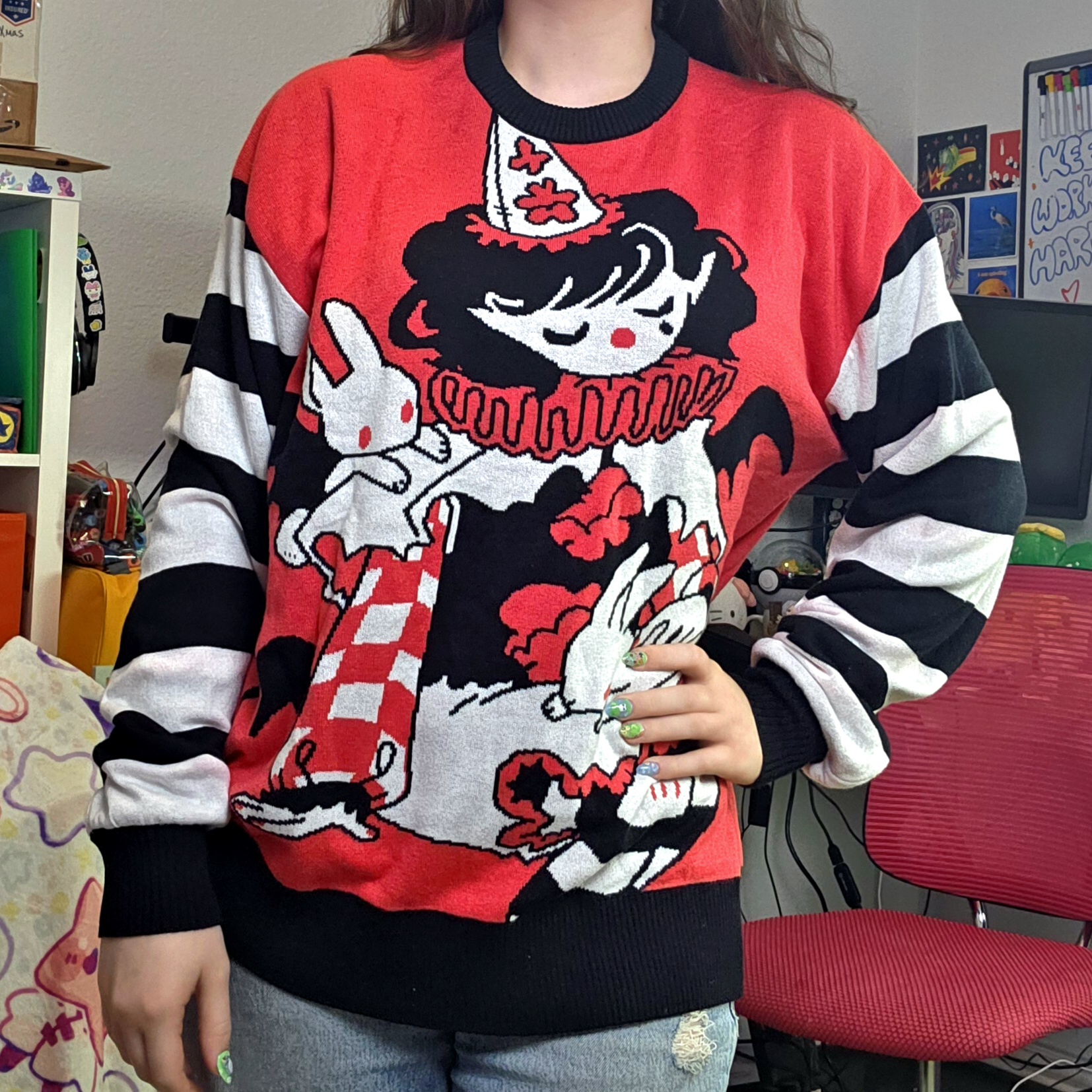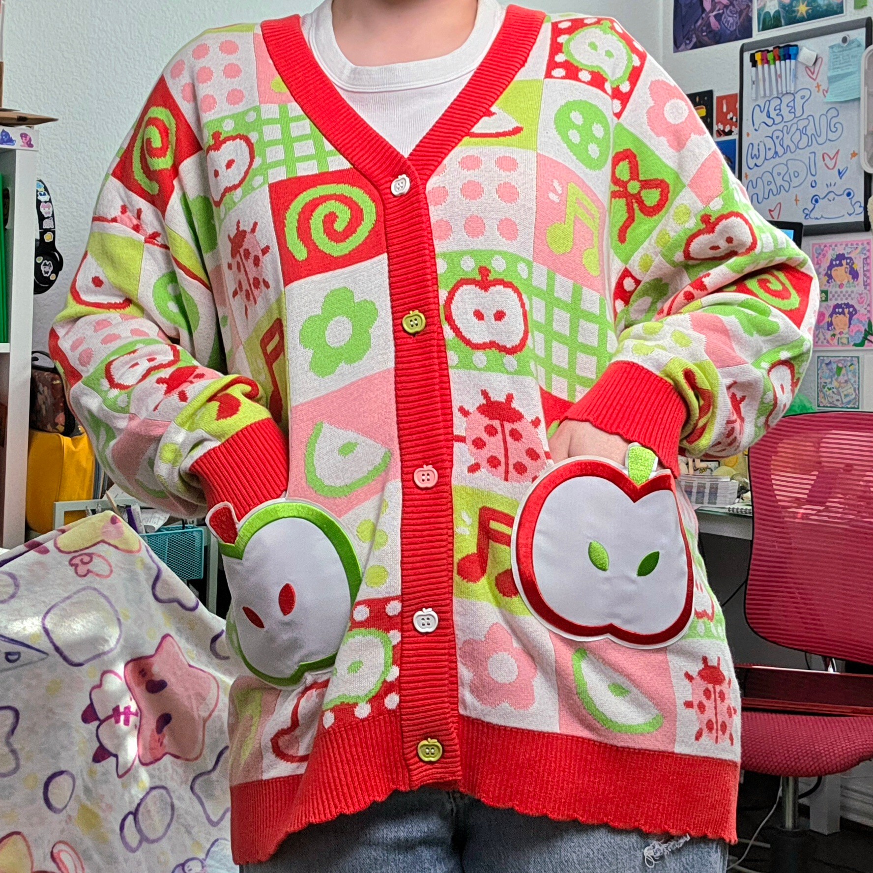 What I do at my core is build emotional connection through characters. I design original personalities that feel like they already belong to someone, then translate them into tangible pieces people can carry into their everyday lives. My specialty is turning expressive illustration into full product ecosystems, from wearable pieces like sweaters and cardigans to collectible blind boxes and plushies that feel like little companions.