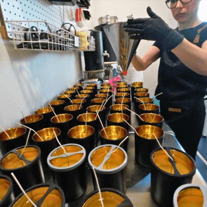 A large part of my work is custom blending. I’m known for helping clients articulate what they’re trying to create, often before they have the language for it, and translating that vision into a finished fragrance. That process is collaborative and precise, rooted in listening as much as formulation. That same approach extends into the experiences I create, including mobile candle parties that invite people into the process and deepen their relationship with fragrance.