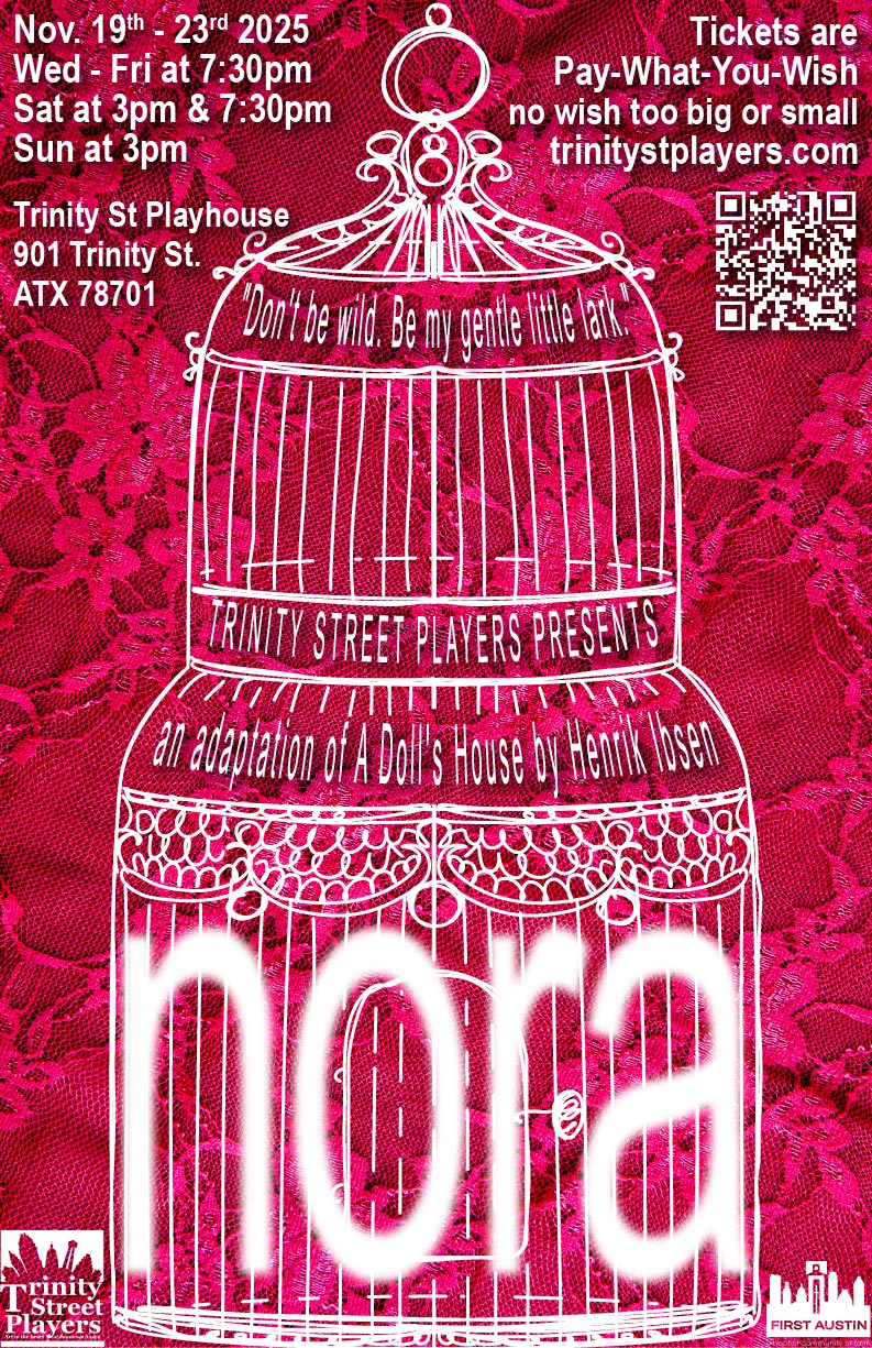 I started working with TSP in 2013, when I auditioned for and was cast in the musical Blood Brothers. Since then, I have been involved with TSP in various capacities, including actor, volunteer, and rentals coordinator. Currently, I serve as the Graphic Designer and Website Manager (and I performed in our most recent production, nora).