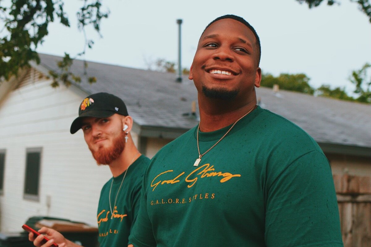 When I started G.A.L.O.R.E., I was a college student at Texas State. My classification was a sophomore at the time. I was in the middle of a transition from my apartment and through my transition I was initially staying with my good friend. It was a late night and I was locked out of his apartment, so I decided to go to the school library until he returned. As I began to explore all of the applications on the computer do to boredom, I came across a website that allowed you to design your own T-shirts. I began to design some awful t-shirt styles that did not represent my faith nr what I believed in at the time. A lot of my designs centered around the college experience. The things that were hip at the time. Through my exploration I designed some shirts that at the time I thought looked pretty cool. I showed my peers and they too thought the same. From there, I thought to myself “if people on the internet are blowing up over clothing, i too can do something that can bring in some revenue for myself and express my artistic side.” The name of the brand at the time was called “Gully”. A brand that showcased the young life and promoted all the desirable things that young adults aspire to be and have. Its philosophy mimicked that of modern day Hip-Hop and the young fast life. As I continued my exploration with the brand, I continued to share my current creations with my friends. It wasn’t until one of my good friends shared their honest opinion. They stated “Tyler, what you’re doing is cool but, does this represent who you are and what you believe in?” This question took me aback. I responded “No, it doesn’t represent me, but it’s what the people around me want.” basically, I was trying to fit in. I pondered on this question for many days. During this time, I was introduced to a new ministry, trying to find my faith in God and actively growing, so I began to pray over what I wanted the brand to portray. During my asking, God told me the word “Galore” which means “many things” and or “in abundance”. I began my research to discover why I heard that word. During my research God revealed to me that galore is actually an acronym standing for God Almighty Lord Omnipotent Righteous Eternal. These were the aspects of and property of God. Once I found my brands Identity, I began the path of sharing my faith and my identity in Christ with other young adults through the brand. Being an explosive evangelist on my campus and around social media sharing my faith through apparel.