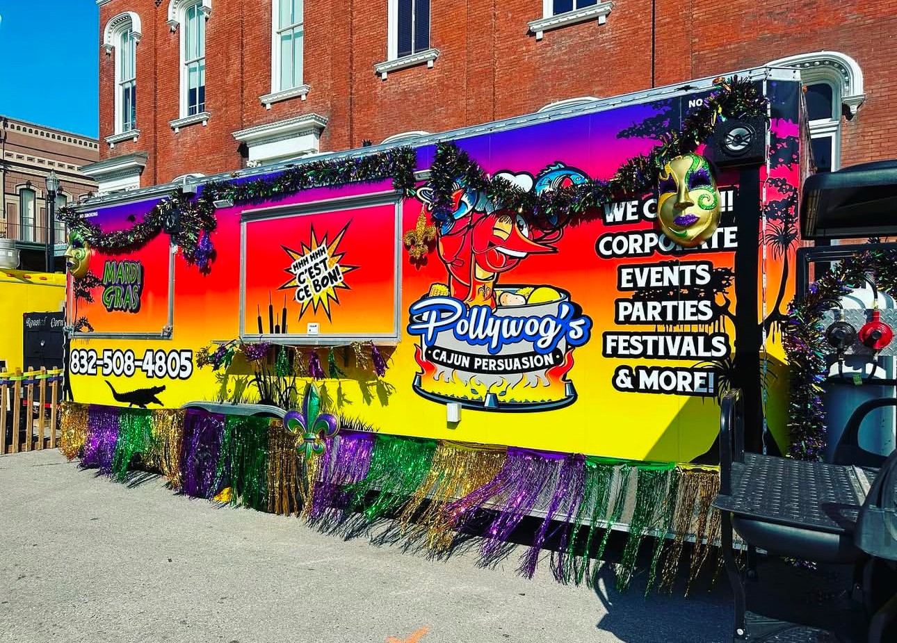 Always had a dream of starting a Bar and grill, it’s all the family talked about. After the second round of Covid hit, my employer was unable to keep staff working. Being an acting manager, I had many rolls to fulfill, including duties that I had to carry out from missing Employees due to illness. With all of the responsibility and stress with no relief or help from upper management, I decided to quit. Cold turkey with no plan in sight. For about a week racking my brain a light bulb appeared. I immediately acted on it! Drew out my 401k and TSP, and bought a food trailer. I’ve always had a love for cooking so it wasn’t a hard decision! With both may partner and myself being rooted from Louisiana, we decide to make Cajun cuisine . Formed all the legalities and permits within the first month and we were ready. Only thing left to do was give it a name! My partner in business came up with the snazzy little name which is coincidentally a spin off name from her apparel line. The apparel line is named after her father who passed years ago to commemorate him. So we named the business Pollywog’s Cajun Persuasion!