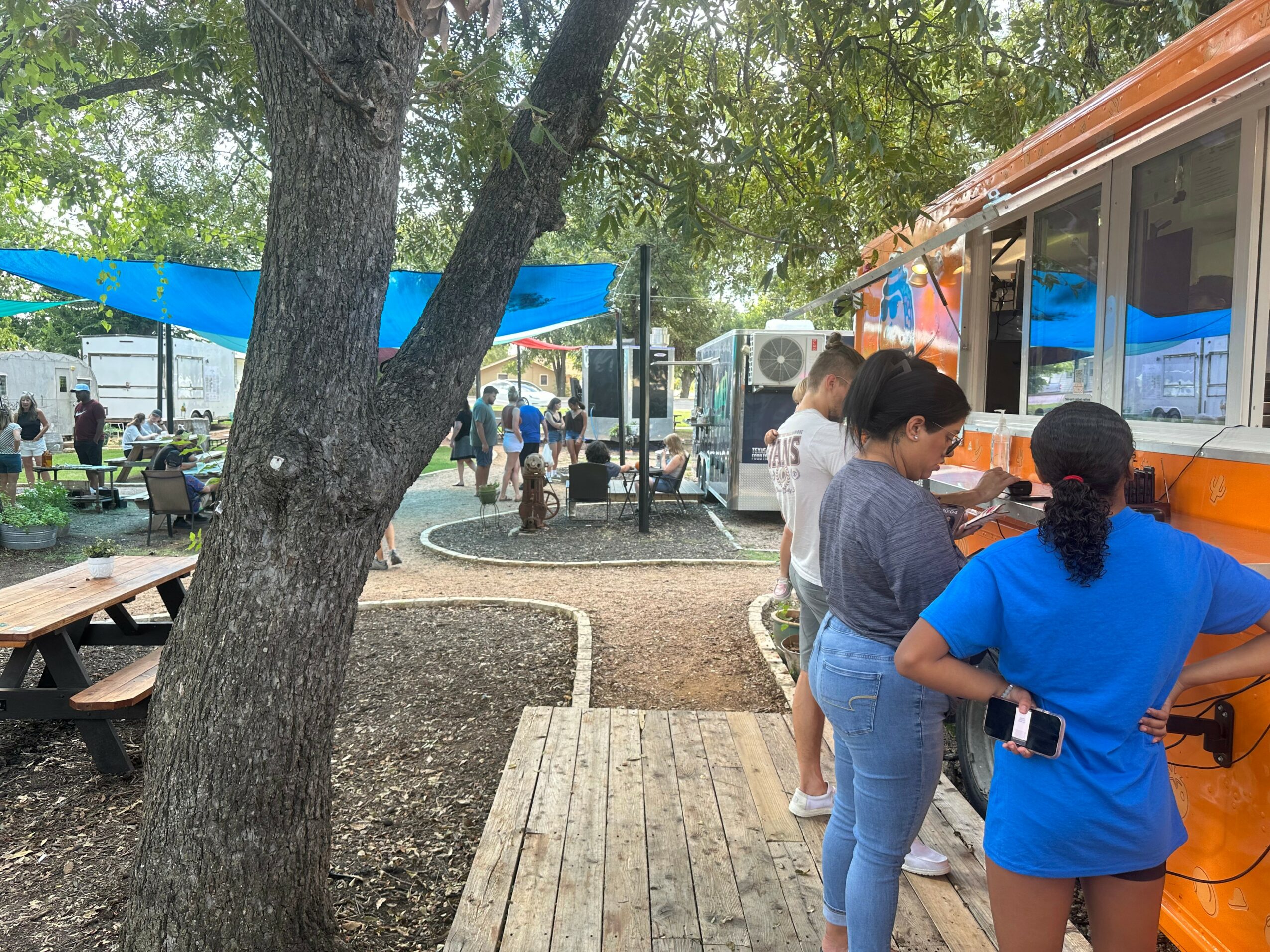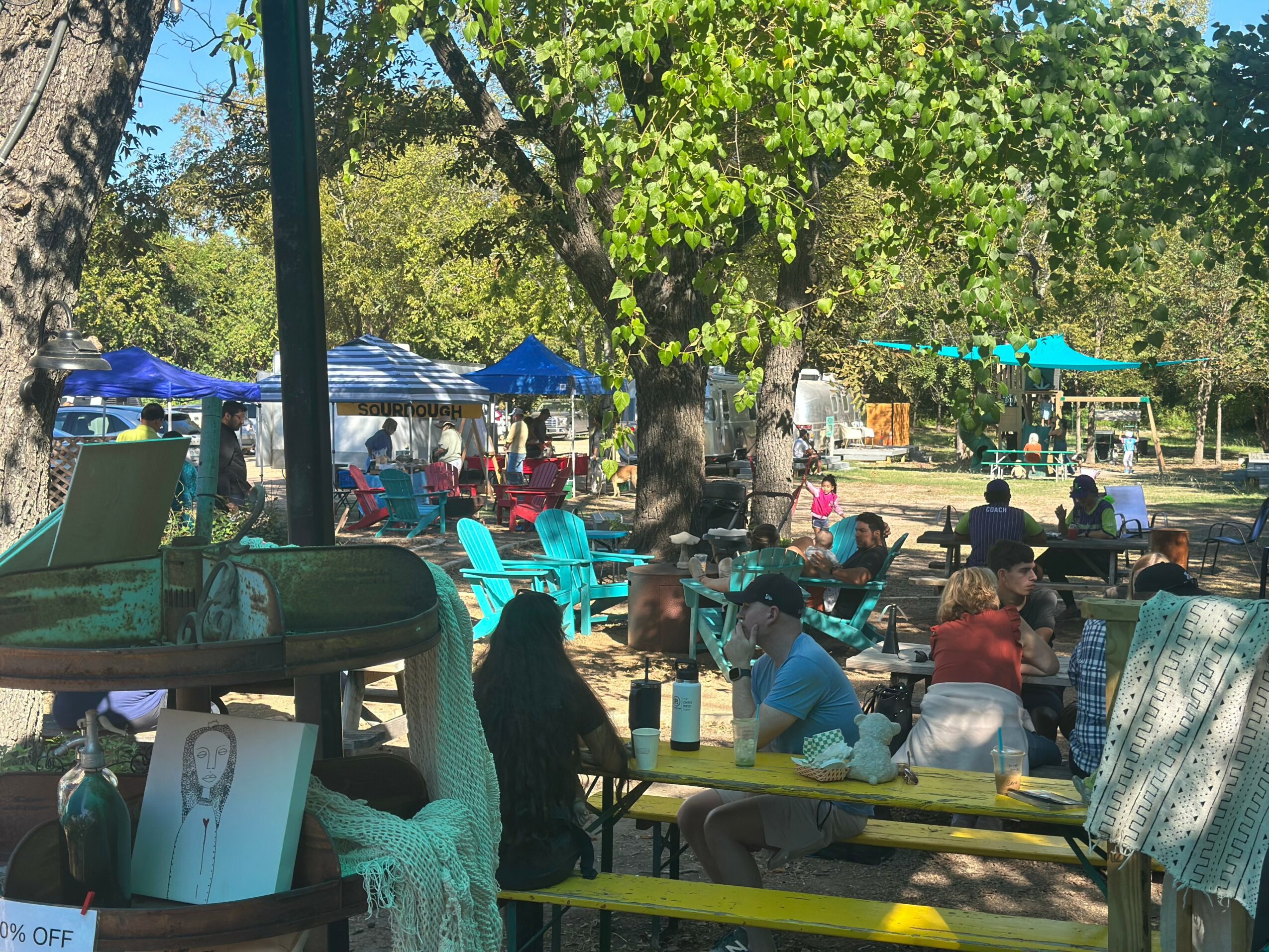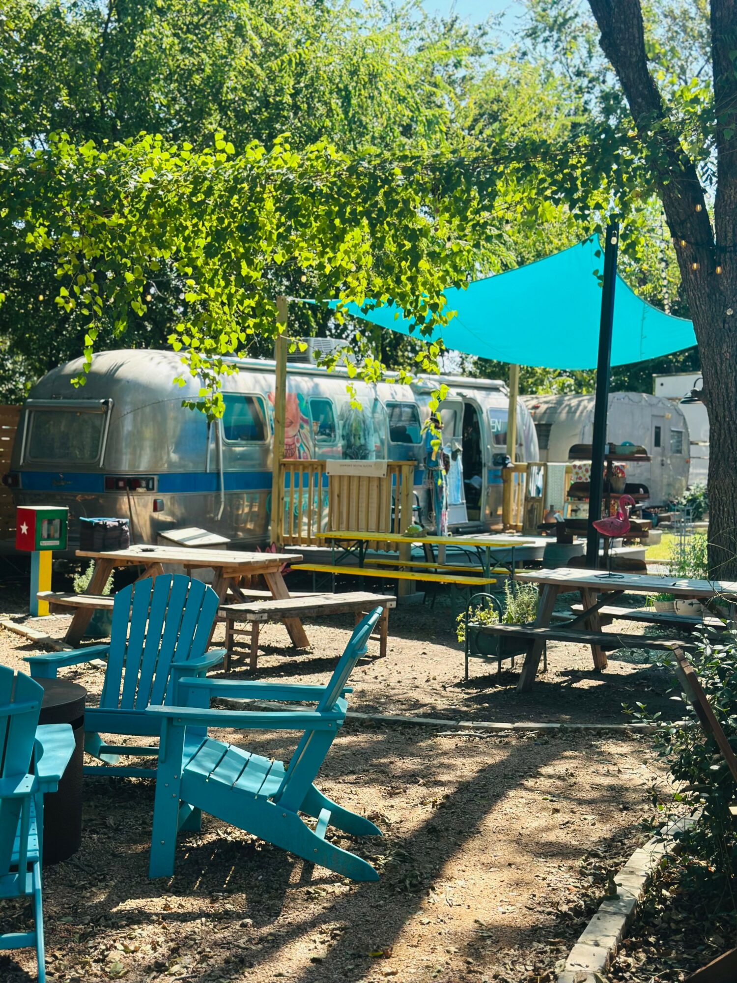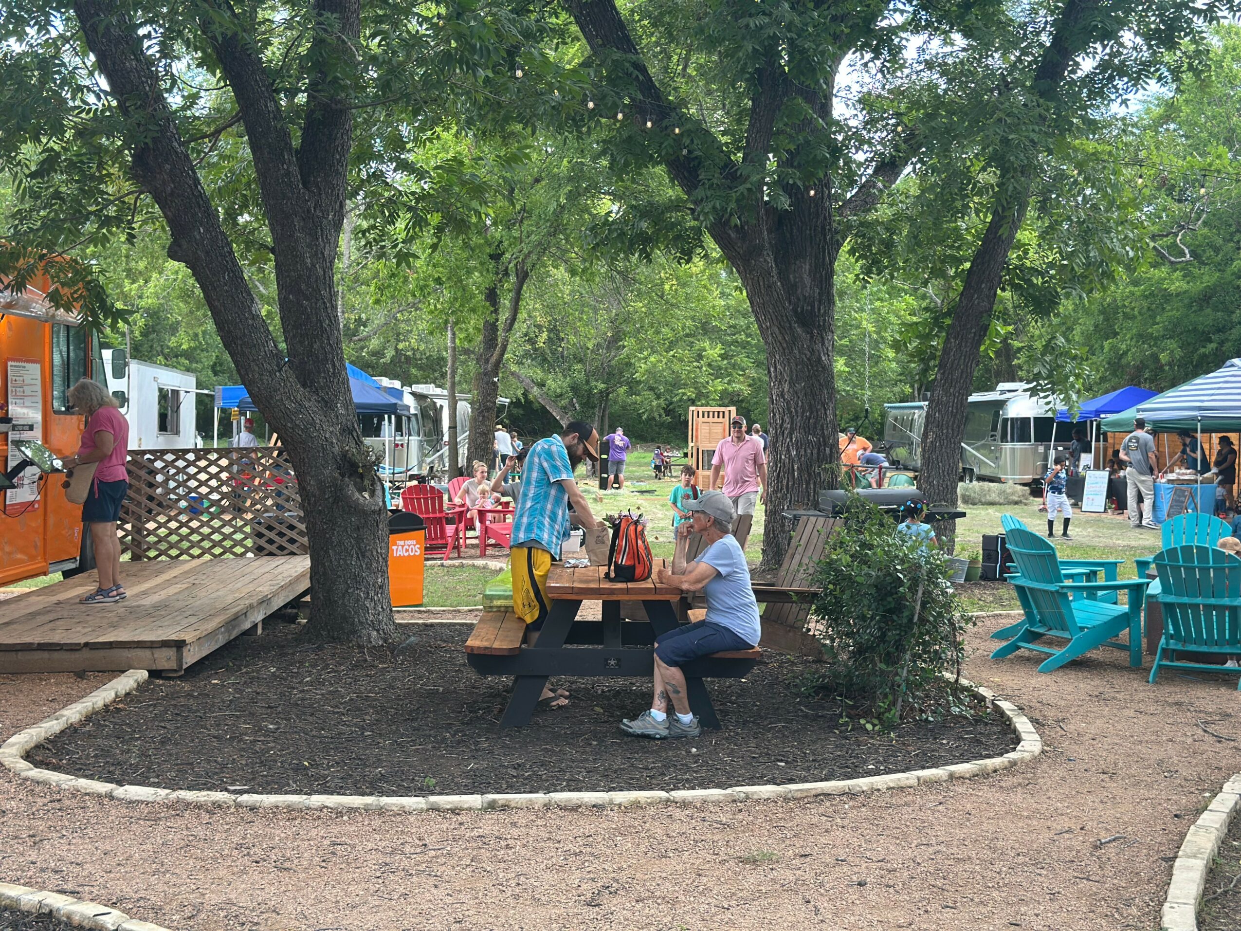 What started in 2018 as a simple investment quickly grew into something much more meaningful. When my husband and I bought the property, we had no clear plan – just a lot of hope and a willingness to see where it might lead us. We began with two vintage airstreams, transforming one into a small gift shop and the other into our first Airbnb. Soon after, we added a taco food truck, and little by little, the space began to take on a life of its own. Navigating city permits was one of our biggest challenges, which meant growing in phases, but that slow, intentional process allowed us to build something truly special. Today, our property is home to a coffee truck, 5 food trucks serving up some of the best food in Leander, four Airstream BnBs, a Saturday Farmer’s Market, and our local artisan gift shop/farm store – all set within a park-like space where locals gather, connect, and relax. What began as an idea has become a thriving community, and we’re incredibly grateful to be part of something that brings people together right here in Old Town Leander!