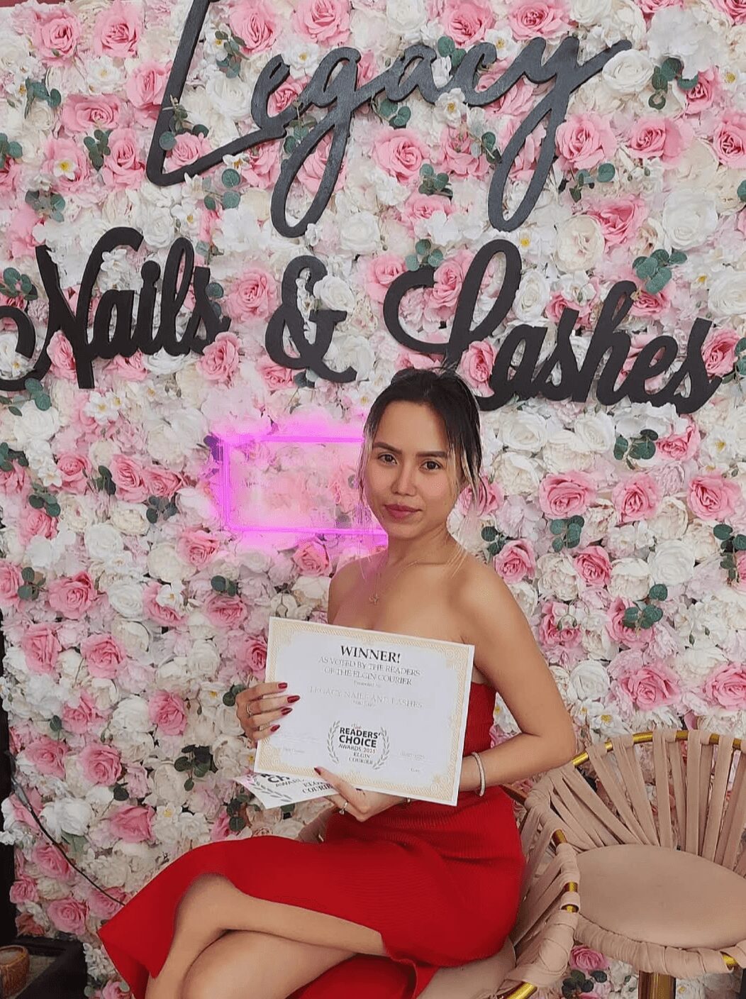 I decided to take over the salon and build it from zero. Fast forward to now—five years later—we have a steady business with loyal clients who come in and support us. We won Best Nail Salon – Reader’s Choice of Elgin 2025, and our Google rating is the highest in Elgin.