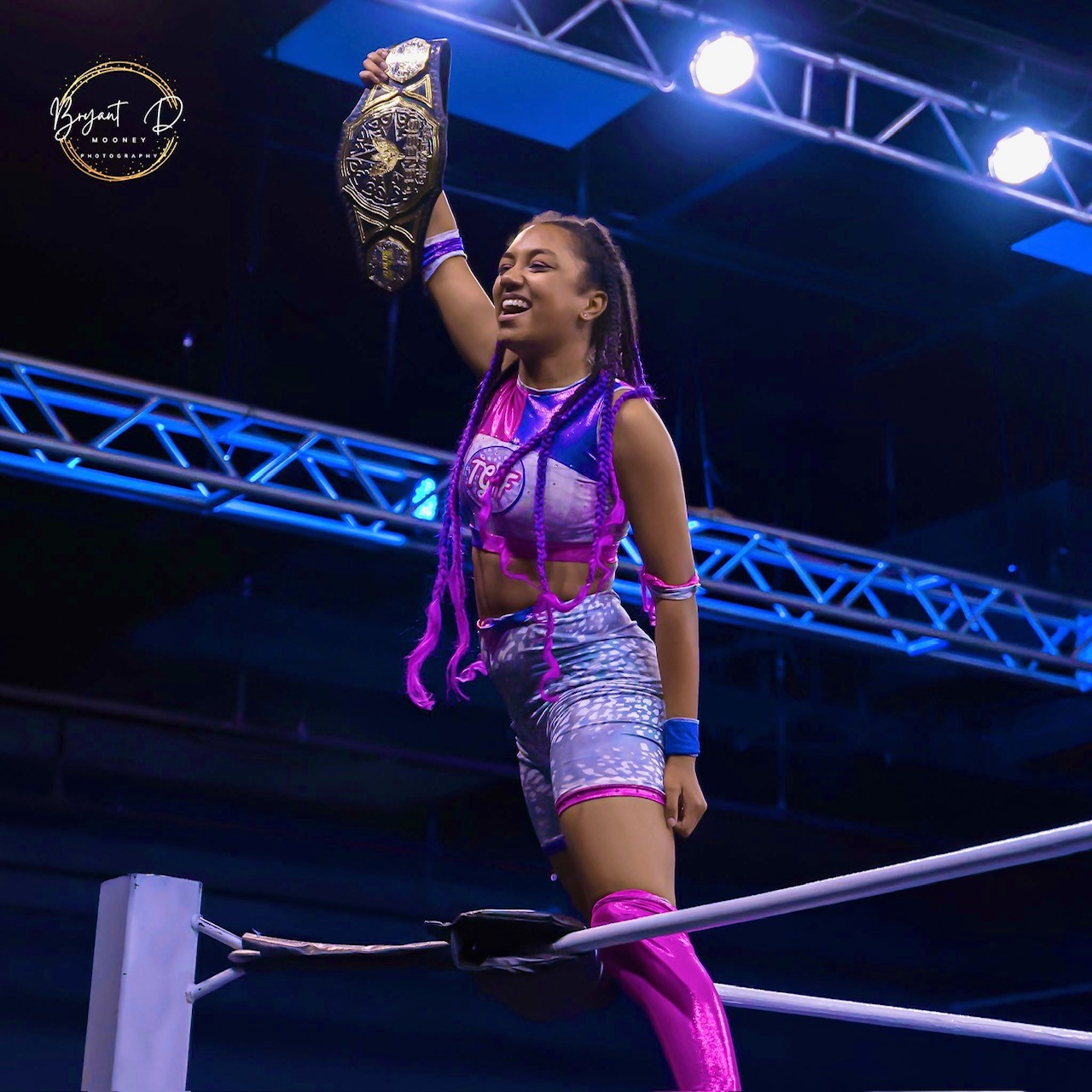 I grew up watching WWE on TV, and ever since I was ten, I wanted to be a professional wrestler. When I was 13, I started training as the first female and youngest person ever to join my training school. Now, at age 16, I travel the state every weekend as a professional wrestler and currently hold two championships.