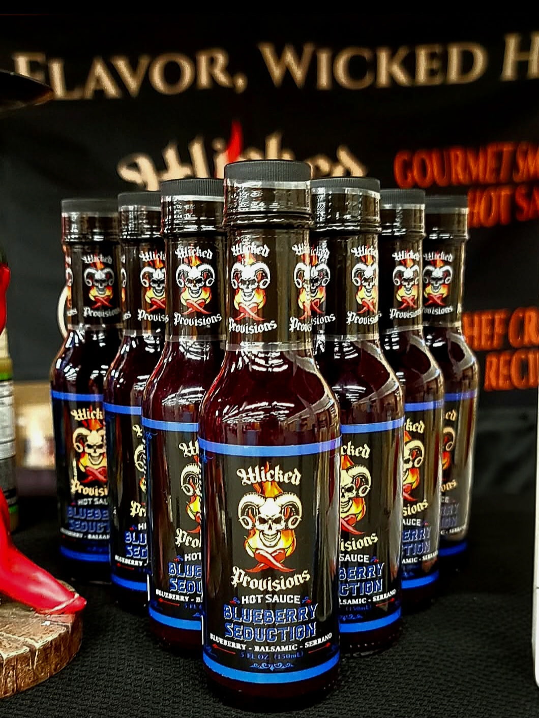 In 2021, that passion led to the launch of Wicked Provisions, created as a separate outlet for his more adventurous side. The vision was clear from the start: small-batch, craft hot sauces made with the freshest ingredients possible, sourcing peppers from local farmers whenever available, and letting flavor—not just heat—lead the way.