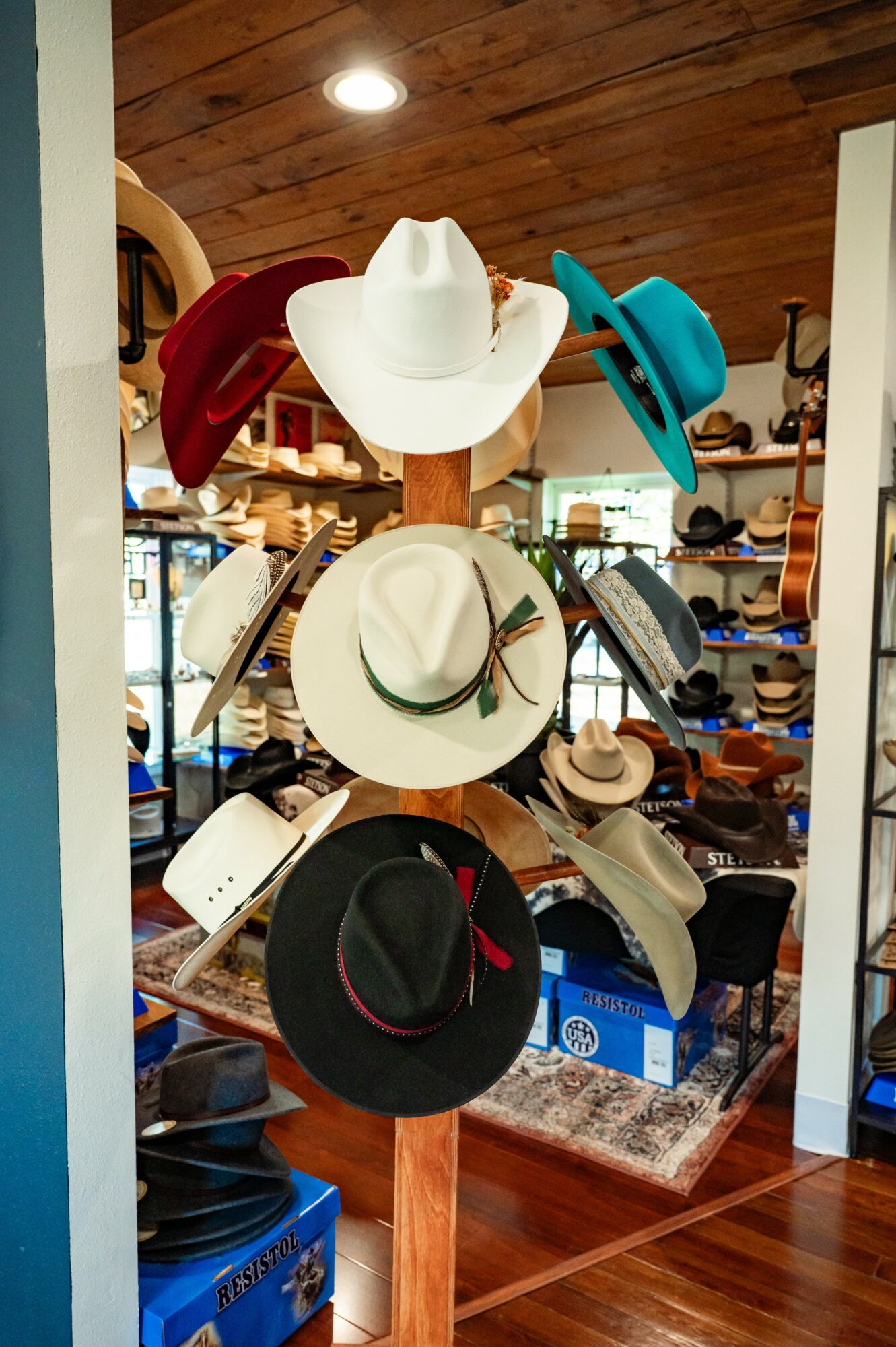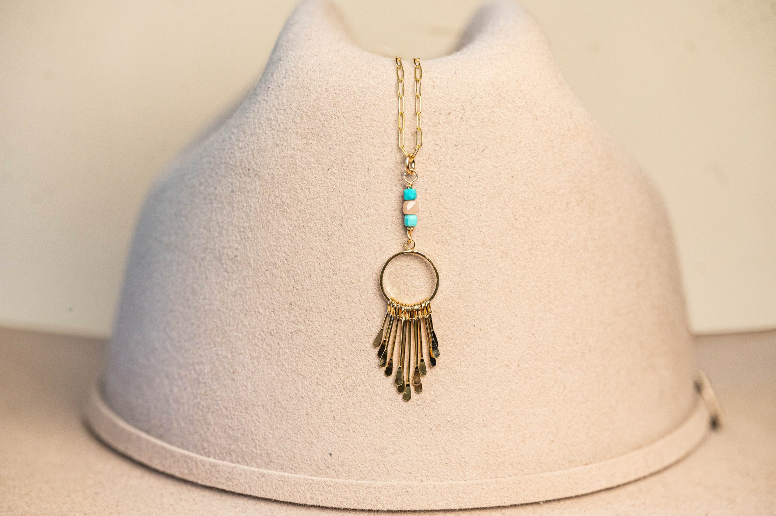 Our business is built on hospitality and helping you discover what looks great on you. Buying a hat from Southern Sky is not just grabbing a hat from the shelf to purchase. It’s an experience of fitting the hat to your individuality. Making sure the size is right and the shape is right all for your personal uniqueness. Then the fun part is custom styling it with hat bands, feathers or branding. Truly making it yours. When you purchase a hat from Southern Sky you also receive a lifelong partner for caring for your hat. If at anytime you want to have your hat re-shaped we are happy to do so. I think what sets us apart from others is we offer our services of hat shaping to anyone. If you have a hat that you didn’t buy from us- we will still service the hat for you at no cost. It’s just a service to the hat wearing community that we are happy and proud to offer. We have had many customers come in with hats that they wanted to give a new face to- with hat bands or custom styling and we are happy to give that service as well. We are proud to carry the top leading hat brands of Stetson, Resistol and Charlie 1 Horse. These brands are top quality hats that are known for longevity and stylish legendary designs. Our jewelry line is top quality, making use of Sterling Silver and 14k Gold filled chains, earrings, rings and bracelets. A lot of what you will see is designed with a southwestern inspiration. I love turquoise and source genuine real turquoise gemstones from mines in the United States. Southern Sky also offers simple jewelry repairs. It’s a case by case situation- some things we can repair and some we can’t but we are happy to take a look and see .