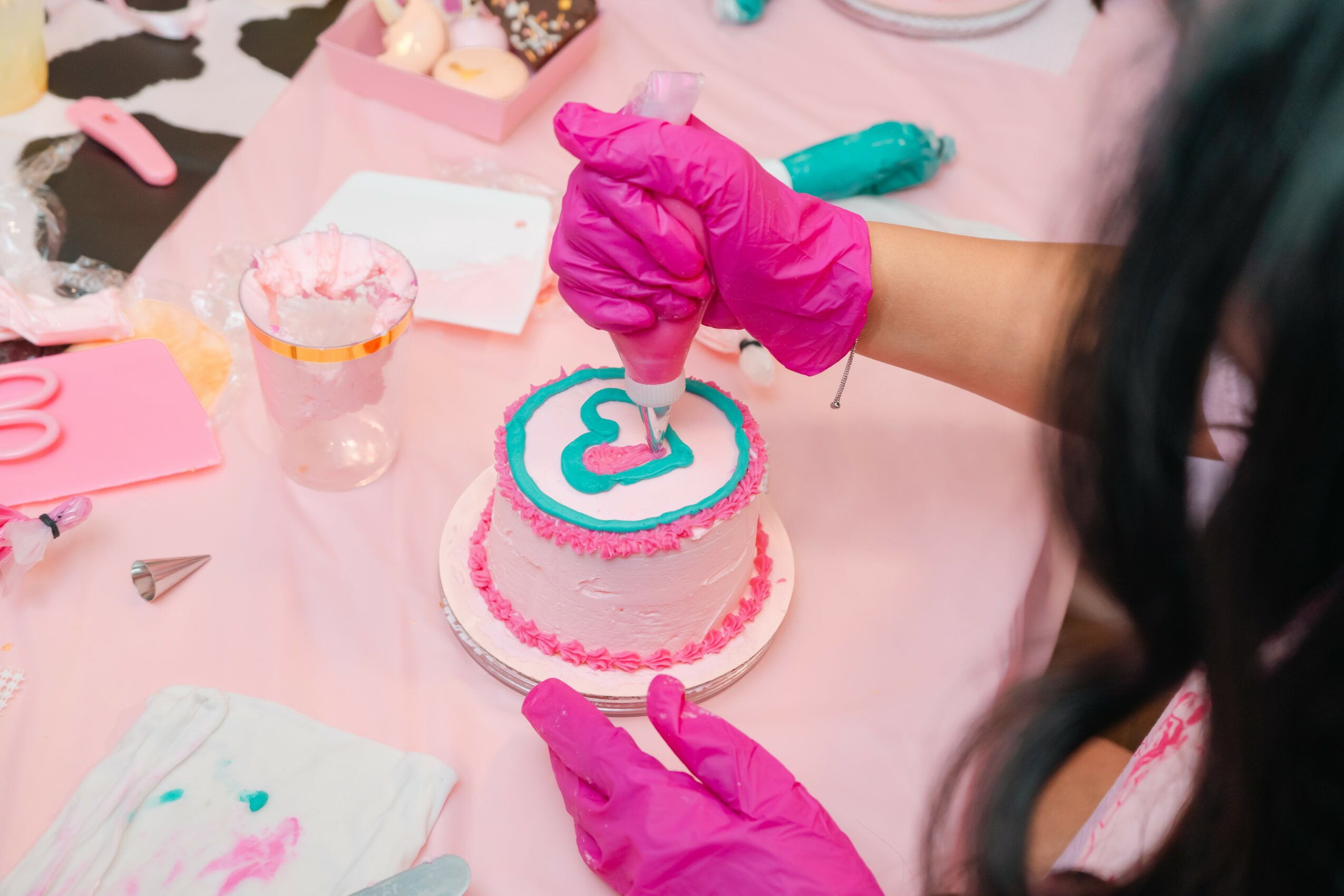 Ultimately, my goal is to ensure equal accessibility, support, and success for all. I want people to feel empowered and cared for. In addition to providing a custom service in terms of theme and design, I like to ensure that everyone can not only participate in the workshop but also enjoy their delicious creation at the end. My background working at gluten-free and vegan bakeries has had a significant impact on my business and clients, as I can provide those accommodations upon request. I personally have many dietary restrictions and understand how isolating it can feel not to be able to participate fully. I also want this to be as guilt-free as possible. Austin is full of people who enjoy a healthy lifestyle and worry about leaving with a cake they’ll overindulge in. I am proud to include the perfect personal-sized cakes in my workshop so people can make their cake and eat it, too. A bonus is that it reduces food waste!