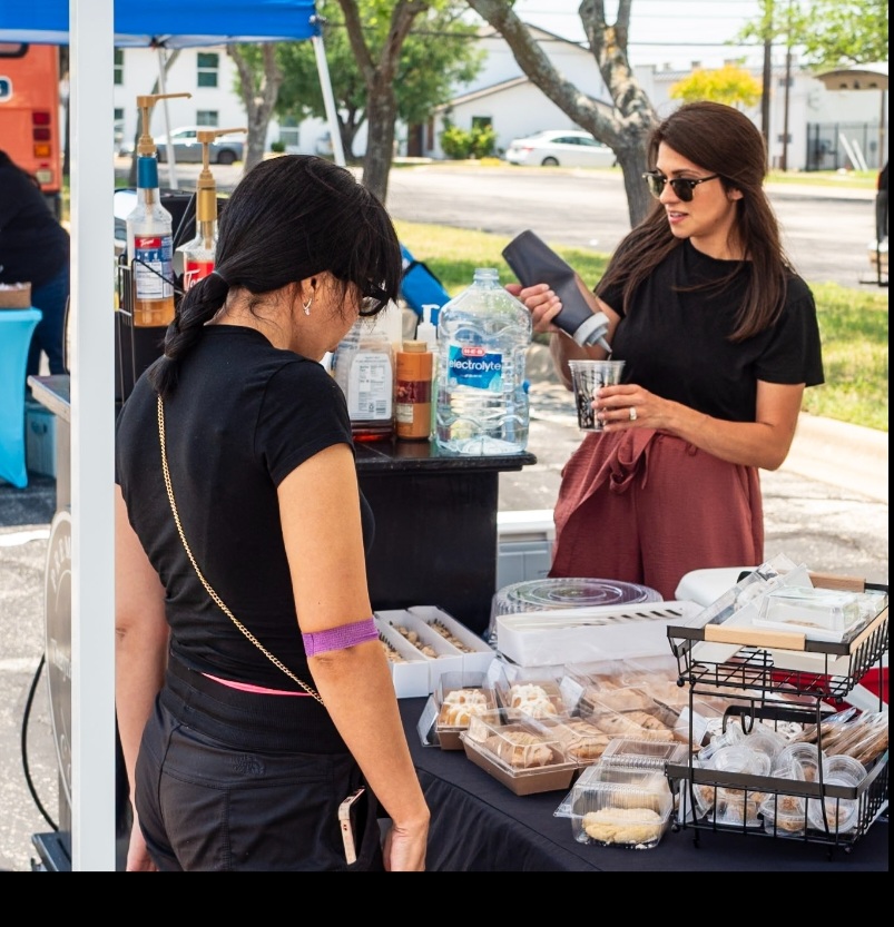 In February, we launched Clayton Farmers Market, a certified midweek farmers market in the heart of Windsor Park in Austin, open every Wednesday from 2-6 PM. It’s our way of giving back to the Austin community. The market creates space for local makers, farmers, ranchers, and bakers to shine — and it’s also where my husband runs Thayne’s Lattes from our booth, serving handcrafted espresso alongside our gluten-free baked goods.