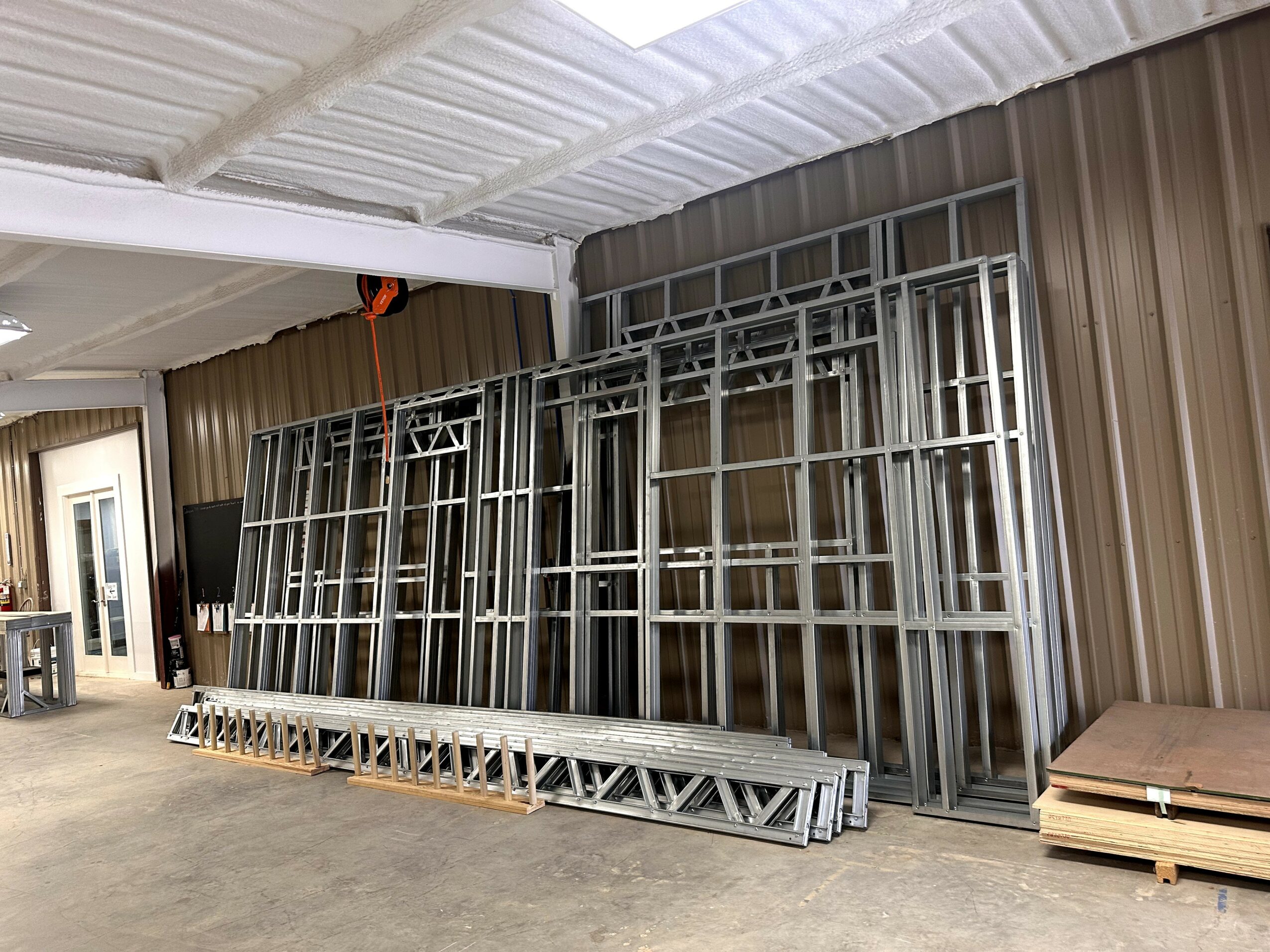 Our company has a long history of “METAL”. The owner of Texas Truss And Frame was involved in the production of metal “studs” back in the 1980’s and when it came back around to us a few years ago, he reminded me of that. He happens to be my husband. So, when I got involved with marketing and sales for LIGHT GAUGE STEEL panelized framing packages for commercial or residential fabrication, the destiny was familiar and a natural progression began to unfold. We already had a 14,000 SF Door Store, built to house our 501c3 called One Judge which supports Christian Charities, so expansion to LGS fabrication under the same roof made sense. With experience in real estate development, construction and retail sales to contractors, expansion to LIGHT GAUGE STEEL brought us full circle, serving our network of contractors and builders. Although we are in Bastrop Co, we service all of the USA and deliver international projects! Anything that can be engineered can be loaded on a flatbed trailer or shipping container, delivered to the job site and assembled FAST with self tapping screws.