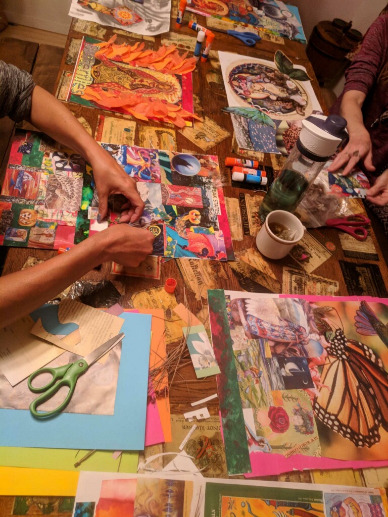 Photo of collage participants creating collages by Tina Karagulian. Permission granted by participants.