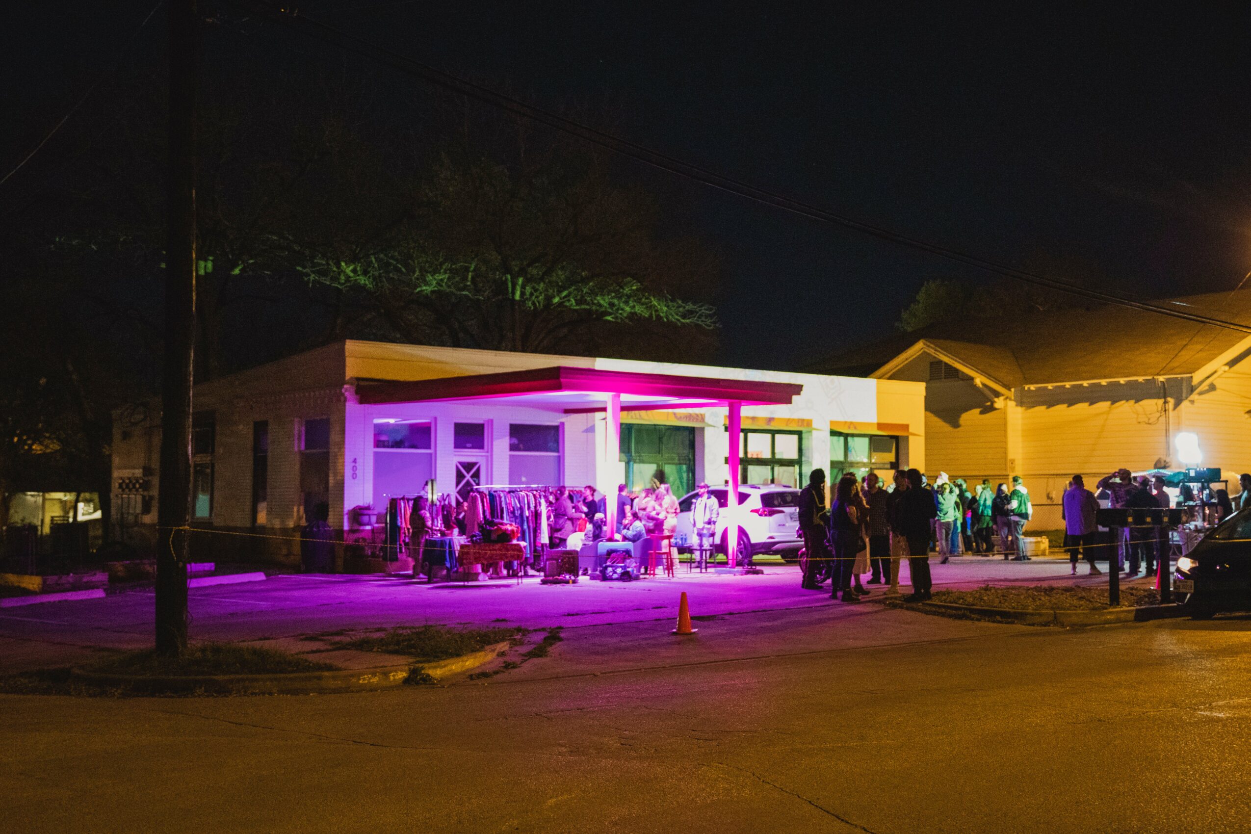 Max Yancy, a longstanding friend and radio programmer, surprised me one day with a text – “You want to open a record store?”. I was in the middle of a bittersweet departure from my current job. I sent back: “I’m burnt out, broke, not too experienced with business management. Other than that, sure!” Like all good ideas, it started over meeting for beers. The dreaming days. We popped up at bar that has had at least two name changes since 2022 for our maiden voyage. I remember wearing our first t-shirt, a sparkly tinsel curtain behind our table with our first batch of crates. It wasn’t dissimilar to throwing a party in jr. high and anxiously hoping people would show. Not too long after, a friend connected us to Jessica, salon owner, stylist, and now friend, who needed a tenant immediately. We moved in to approximately 96 square feet shared with her salon. We threw parties in the parking lot with local bands. Our first home was exactly what we needed, but the store was growing (storage comes with the wallpaper of the record industry) and the salon was growing. A current neighbor connected us to the space we are in now, that we share with Moonicorn Vintage, owned by friend, Naomi. Like all things Lockhart, the moving and shaking is done by neighbors and word of mouth. People helped us shove everything we owned in our new home and in many ways, it still feels like we are still making it all happen with our friends’ bands, our neighbors skills, and the scrappy, kind community here in the BBQ capital.