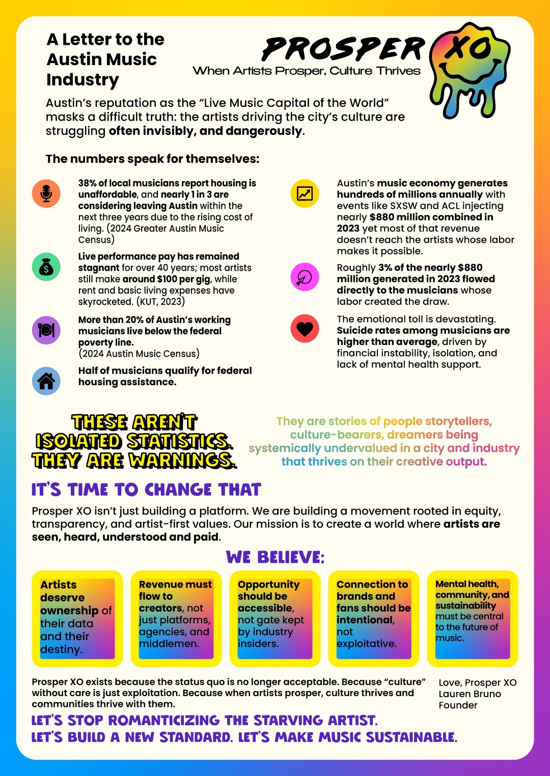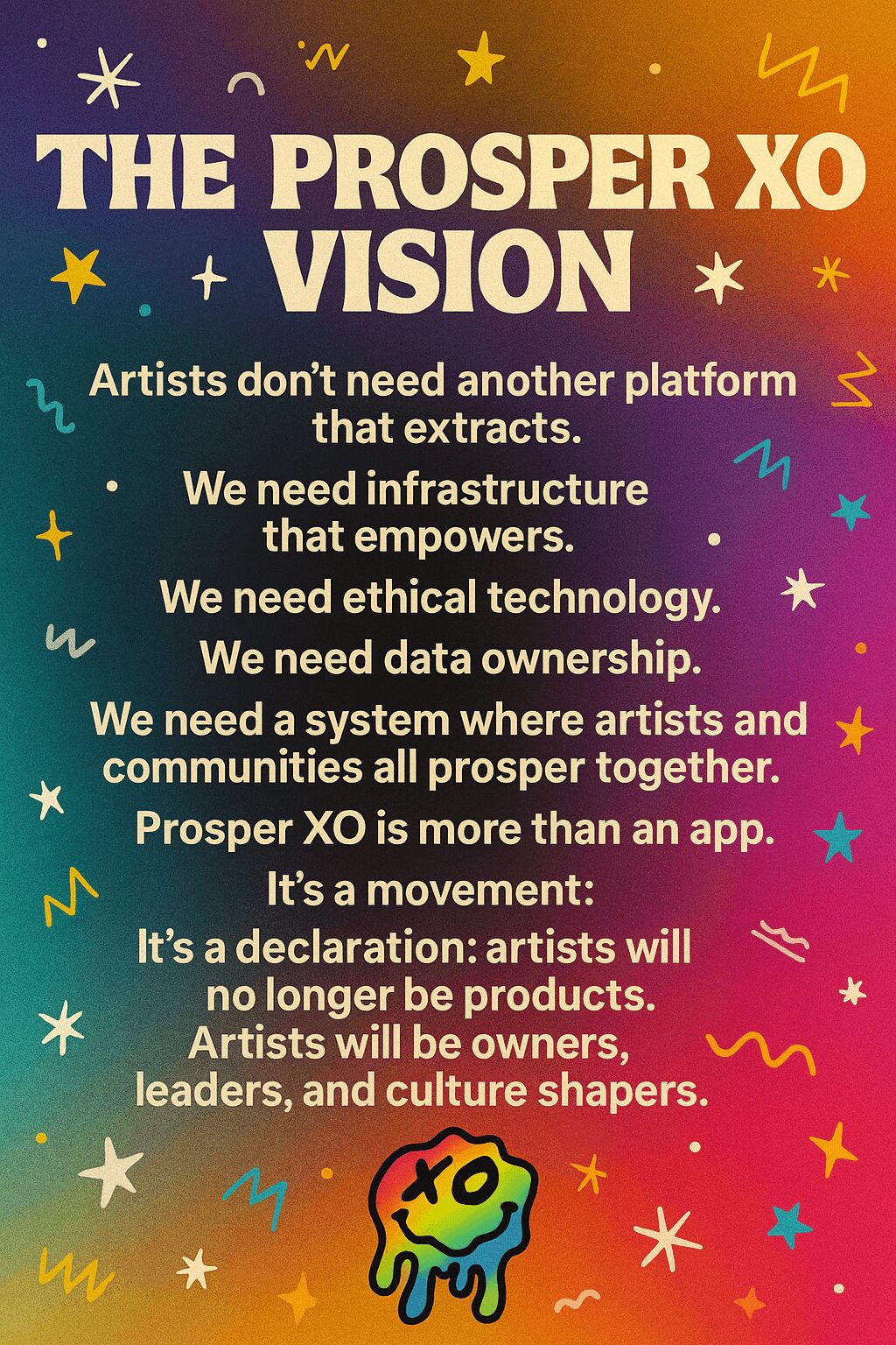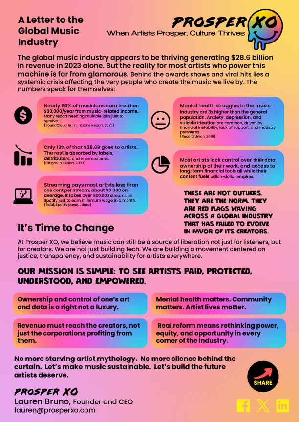 At every step, my lived experience has taught me the same lesson: artists deserve ownership, choice, and sustainability. Prosper XO is how I’m turning that belief into a blueprint for the future.