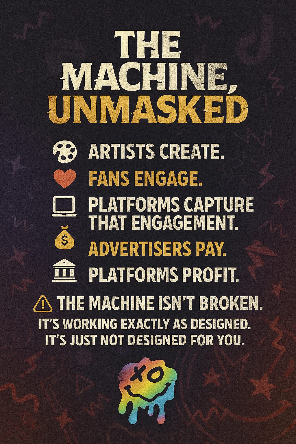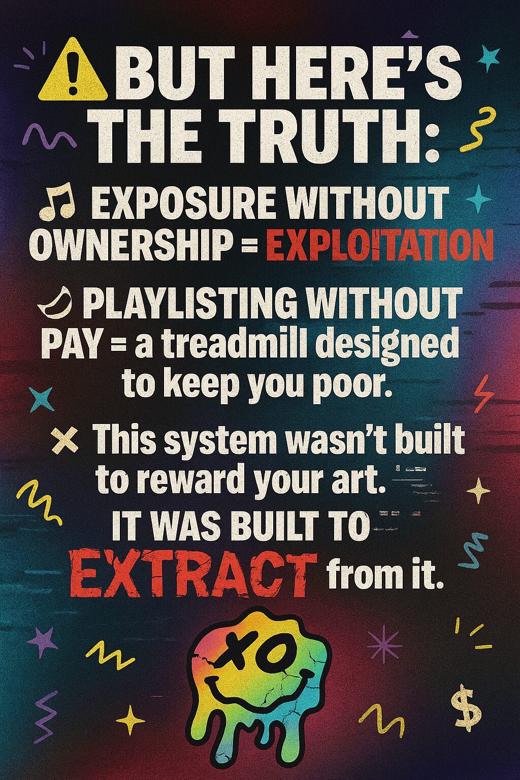 Then came COVID. I dove deep into researching data ownership and how platforms like Spotify and SXSW exploit artists’ work and data. The numbers were devastating: 61% of American musicians live below the poverty line, and I was seeing friends give up on music, or their lives, because sustainability felt impossible. That was the breaking point for me. Enough was enough.