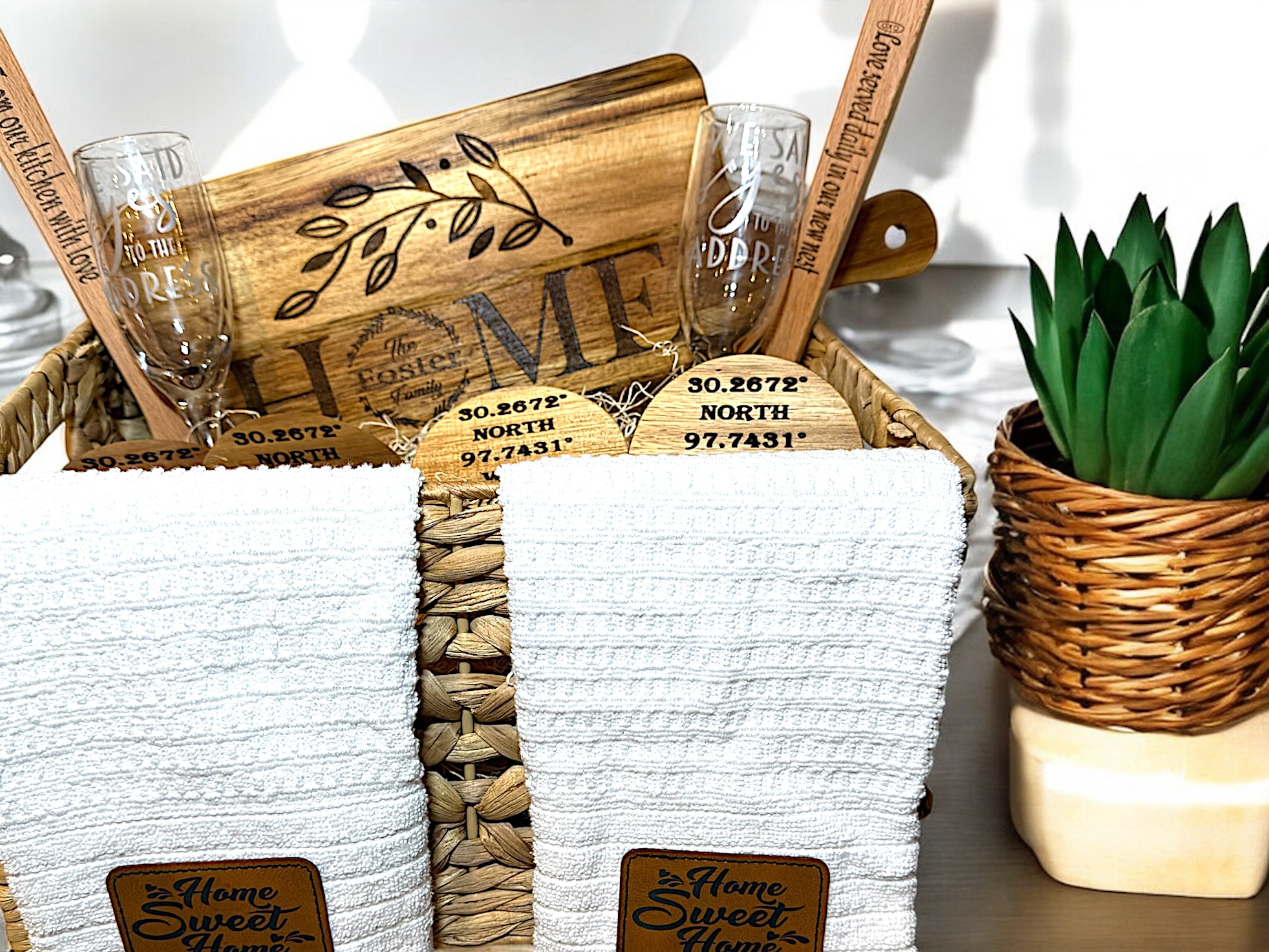 Since then, that first small laser has grown into professional grade equipment and the ability to work across a wide range of materials. Today I create custom pieces on wood, glass, metal, slate, acrylic, fabric, and other materials, from coasters and cutting boards to tumblers, wedding glassware, jewelry, hats, and branded pieces for businesses.