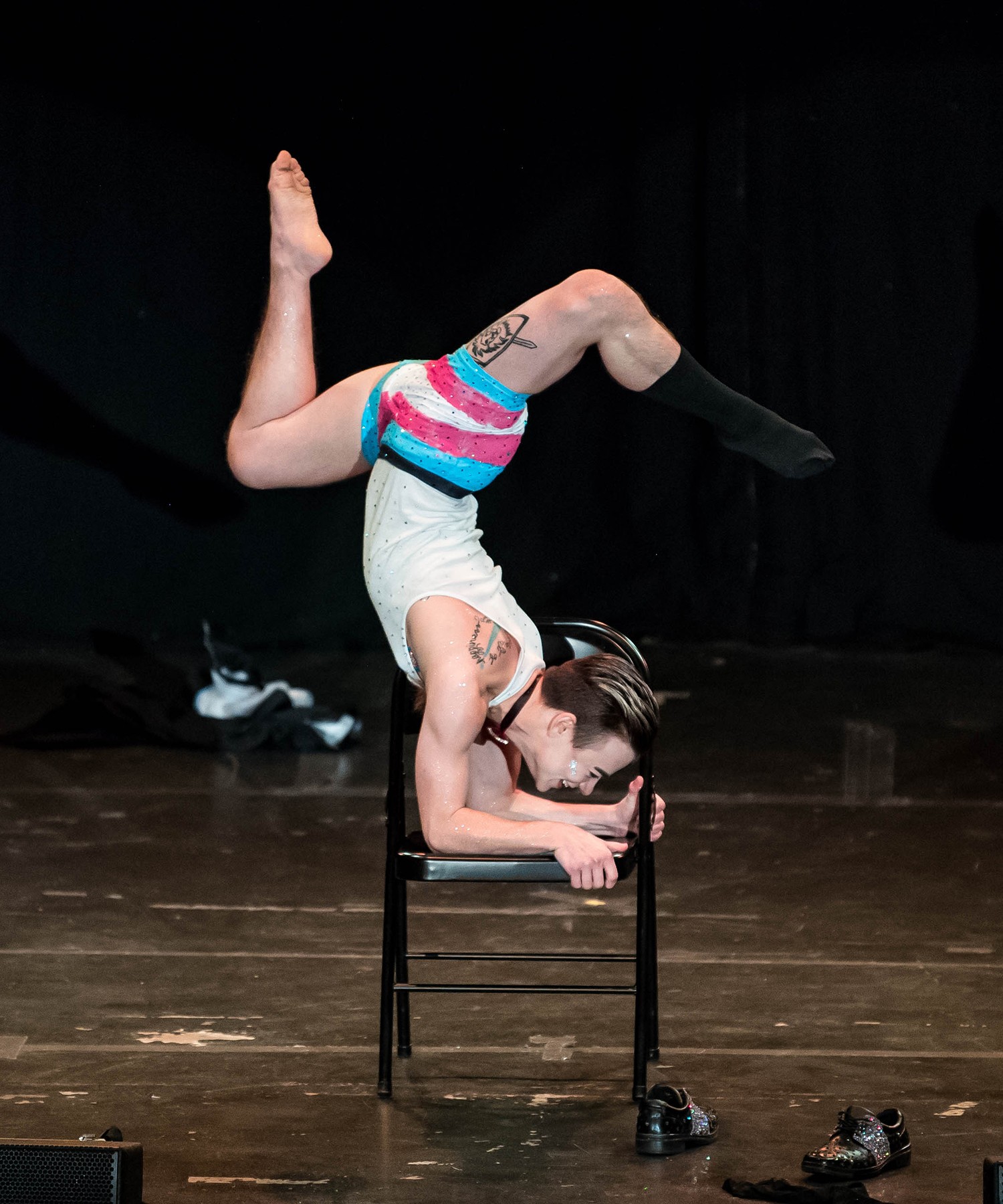 A few years into performing professionally, I could tell something wasn’t quite right. I started performing drag with Austin’s only drag king troupe, “The Boiz of Austin”, in December 2015, and learned through drag that I was actually transgender; specifically, trans-masculine. In 2016, I had to change my stage name, my costumes, and my style a bit to finally accommodate my authentic voice. It was SUCH a fun and liberating process!! Since coming out as Transgender, my performance career has taken me above and beyond any of my wildest dreams. I have been featured in more than 20+ burlesque, drag, and performing arts festivals in six different countries. I performed a five week UK tour in 2017, a six week European tour in 2018, and I traveled twice to Europe in 2019 to perform and teach dance. These days, I perform burlesque (or boylesque), drag, aerial, pole, live singing, acrobatics, and sometimes, even clowning. Through my performance platform, I have been able to host annual fundraising events for The Trevor Project, which is a non-profit organization that provides resources to LGBTQAI+ youth in Crisis. I produce the fundraiser in memory of my brother.