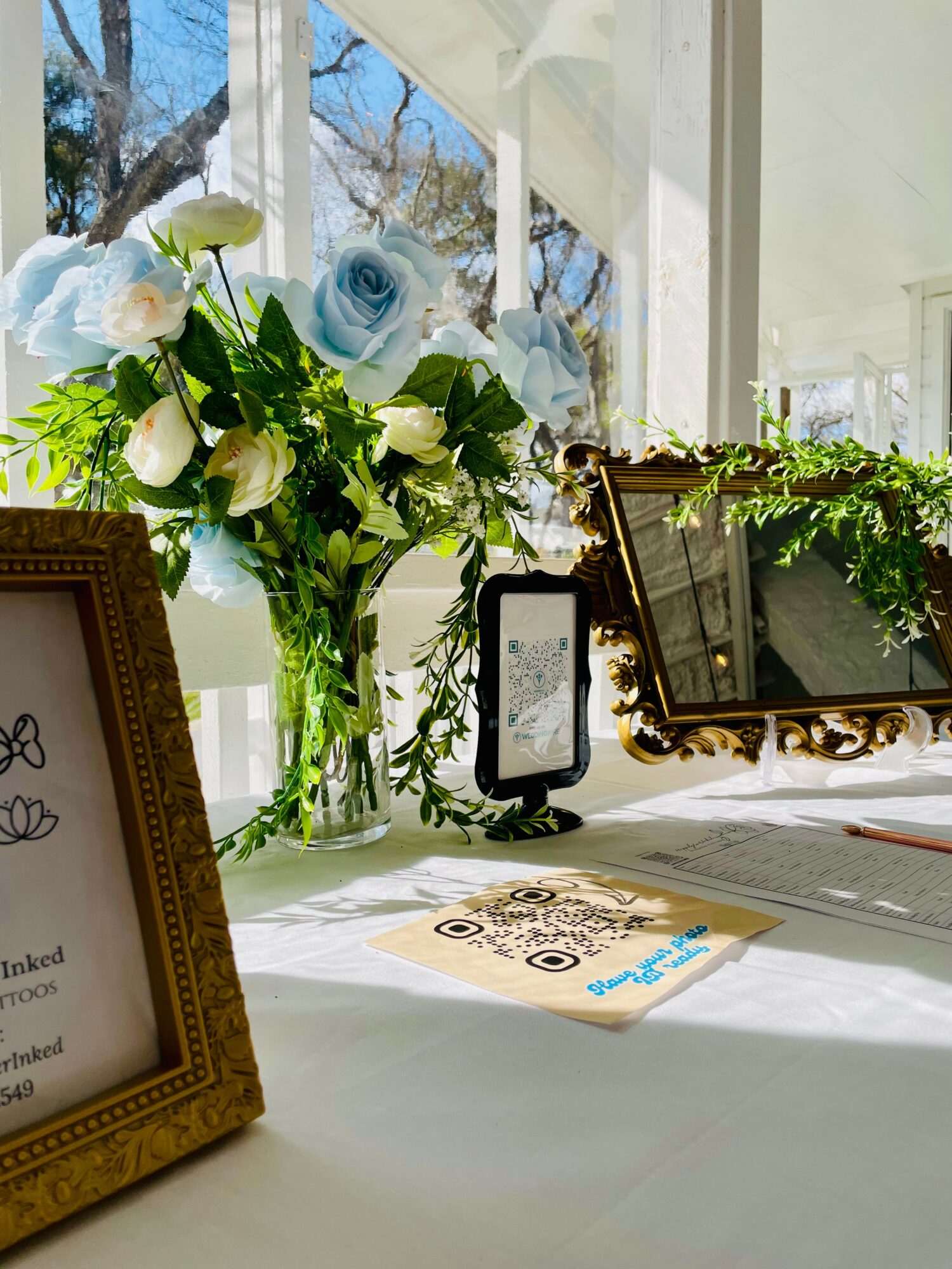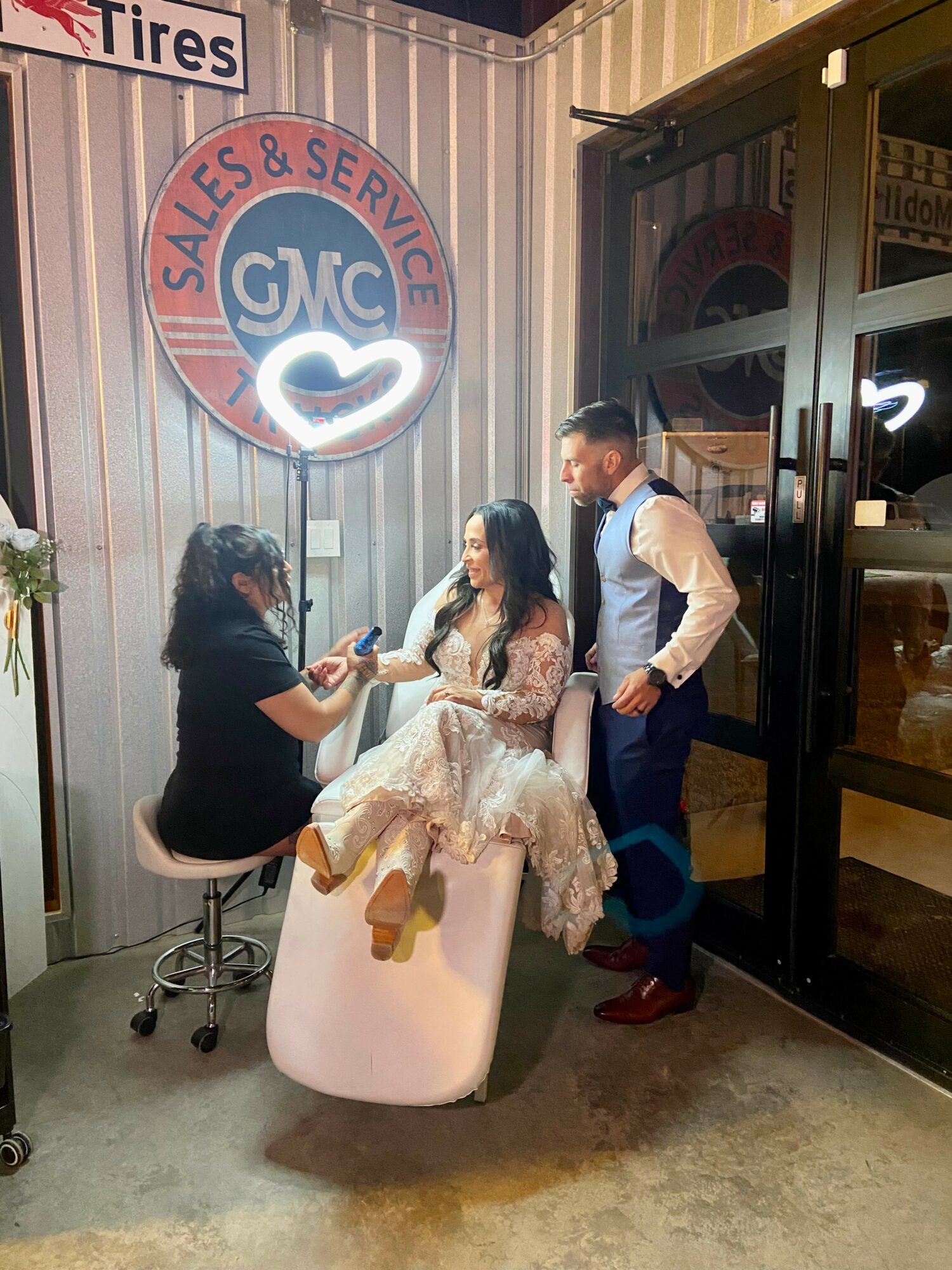 We also offer several additions such as our signature “love and tattoos” sign that stands over 4 feet, and is the perfect eye catching charm for a wedding appearance! So many amazing pictures have been taken with it!