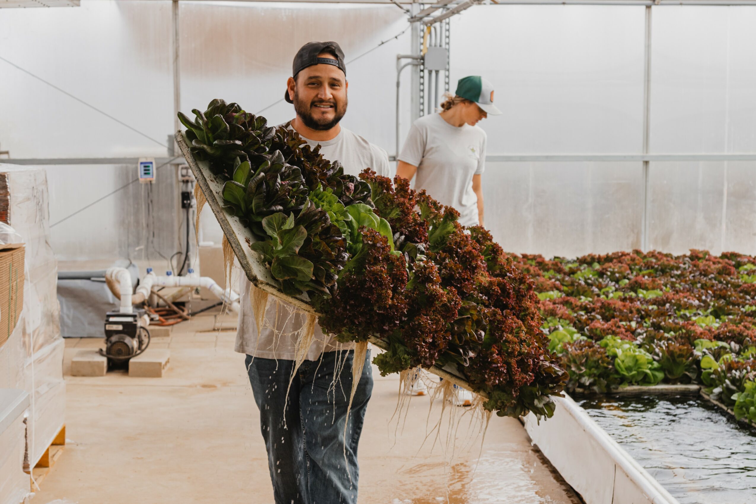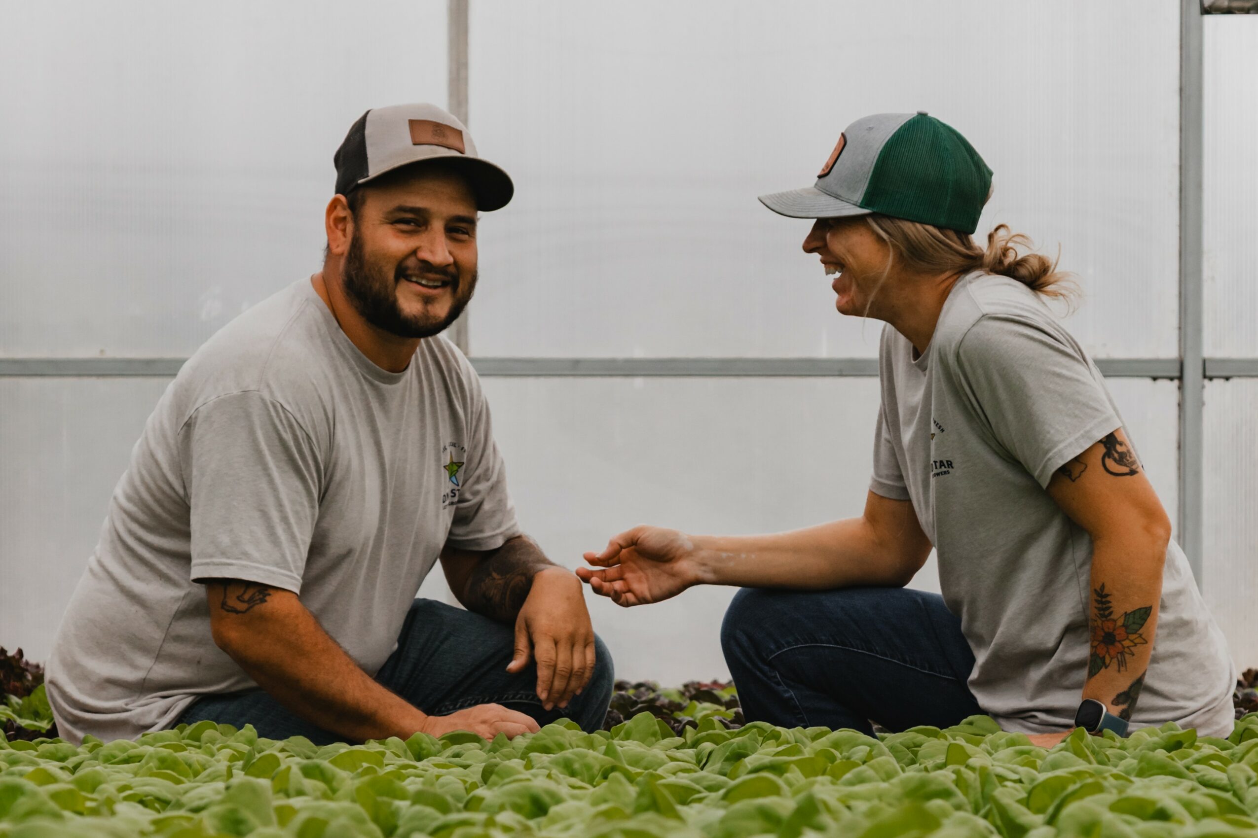 Our journey to starting Lucky Hollow Organics has really been a story of learning, growth, and following a calling that kept getting stronger with time. My husband Daniel and I, come from the golf course side of agriculture. We have always had a passion for growing, and had the vision for Lucky Hollow Organics long before we were introduced to Lone Star Lettuce Growers. After 8 years on the turf management scene, I was ready for a change of pace and took a job as a greenhouse hand for Lone Star in February of 2024. I have always had a passion for plants, and to have the opportunity to learn how to sustainably grow food was a dream job.