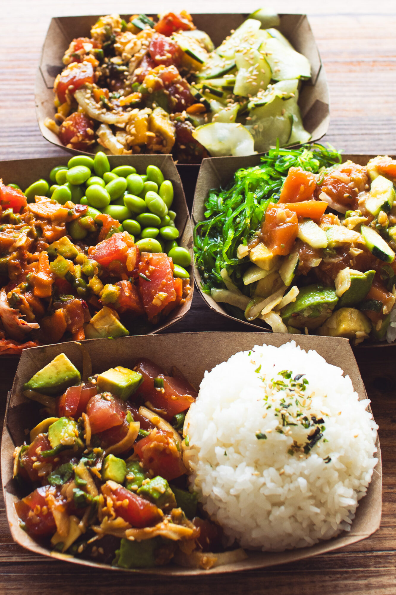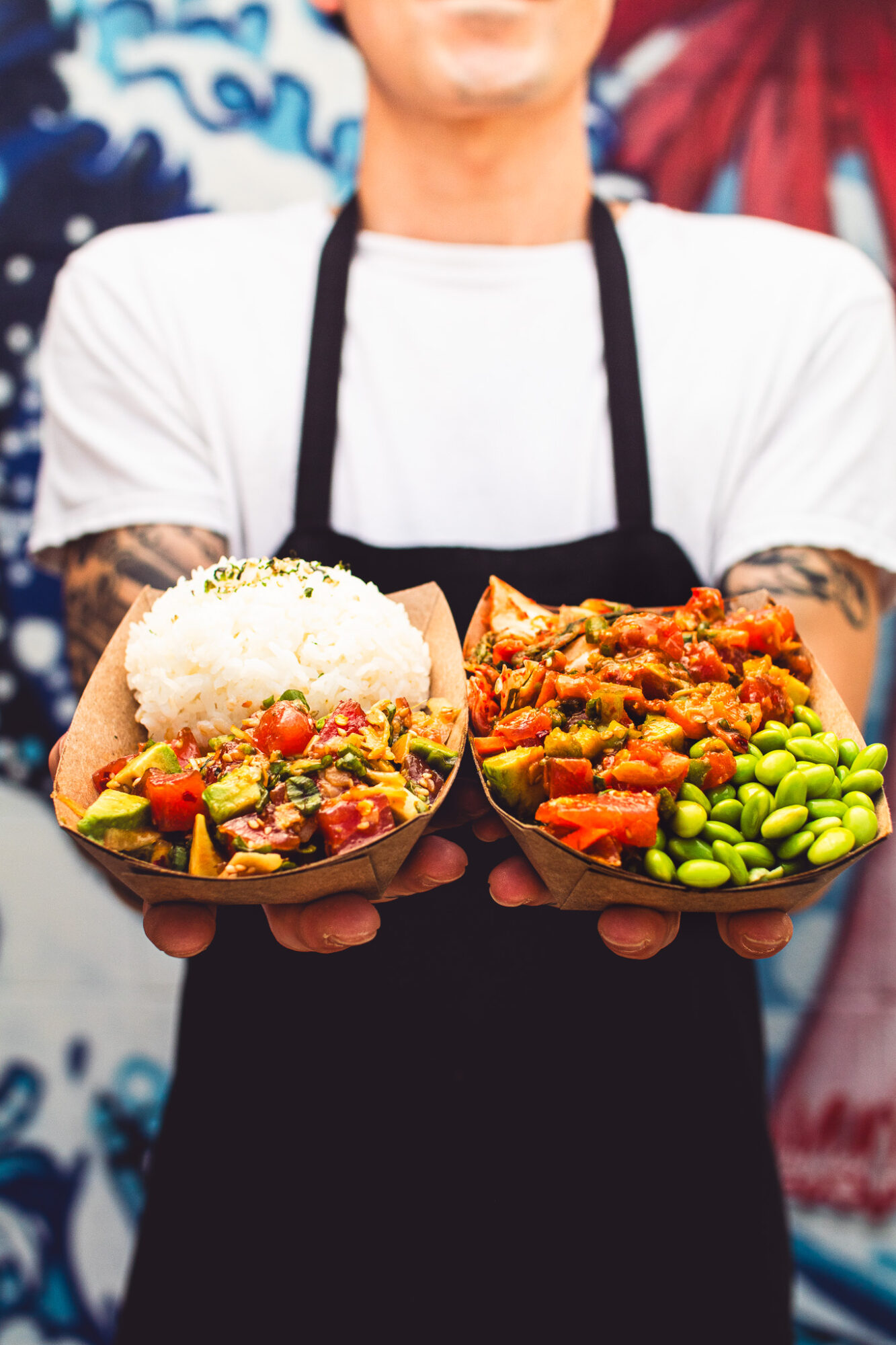 Those someones turned out to be us. We found a little food window on the Venice boardwalk, developed the branding and menus and launched a business. We started making traditional poke which is pre-made and marinated and sold by the pound. We quickly had to shift gears to make poke to order to avoid waste.