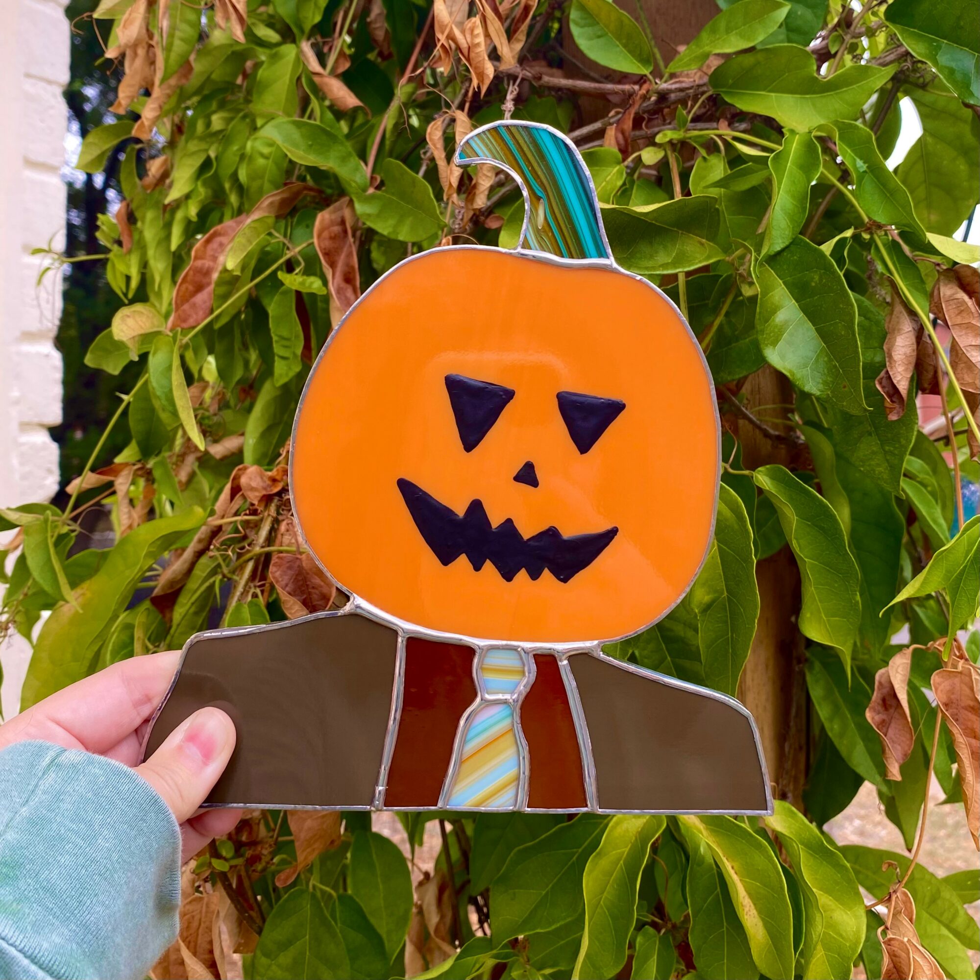 Although I always loved working with my hands as a young child, I never gave myself permission to do it growing up because I didn’t have a natural talent for it. I focused on the artforms I had a knack for like singing & dancing, & didn’t reintroduce visual art into my life until college. I started an Arts In Healthcare minor at Columbia College Chicago and learned how much expressive artmaking could benefit mental and even physical health. Focusing on how cathartic it felt rather than critiquing myself on the final product was liberating & reawakened a deep love for creating. From that point on I tried a lot of artforms looking for what would be “my thing.” I drew, and painted, and marbled, and photoshopped. I poured glitter on wood & glued cellophane onto canvases. I worked with pompoms and fabric and anything I could get my hands on as a broke 20 something with a musical theater degree. That exploration period gave me the catharsis of creating, but I still didn’t feel like I had found my niche- Until late 2020 my creative mother in law brought me to her workshop and showed me the most recent artform that she had been learning, stained glass. Working with glass is a very involved process and to end up with a finished piece involves designing, scoring & breaking, grinding, foiling, soldering, cleaning, and polishing. My MIL patiently walked me through each step, and the variety of tools and procedures kept me interested through the whole process. At the end of my visit I left with a shiny blue and pink spider web we had made together. I held it in my hands and I was hooked. I told my family “I think I’m going to dedicate my life to this.” I am so lucky to have parents that always encouraged me to express myself and fostered my love for art and performance. So instead of brushing off my most recent whim, they took me seriously & got excited for me. For Christmas that year all the close people in my life gave me the tools and supplies I needed to get started. Because of their support & my MIL’s guidance, I was able to practice at home & learn quickly. I took a few classes with the wonderful people at Blue Moon Glassworks which refined and broadened my skill set. Eventually I got the nerve to start an Instagram page dedicated to my glasswork, and that’s how Bluebrows Handmade was born. Promoting myself and sharing my work made me feel so vulnerable and exposed. As soon as I made the page I tried to take it down and just couldn’t figure out how. But one by one messages poured in from friends, family, and acquaintances wanting to commission me. It was a dream come true to be seen and appreciated as an artist, and it was one of the best days of my life. From there I started a website and eventually I applied for shows and markets as well. I was lucky that my first experience putting my glass on display was at The Little Gay Shop’s Halloween market which went better than I ever could have imagined. They were able to gather hundreds of art lovers who showered me with appreciation and patronage. I would soon come to realize not all markets end up being so wonderful, but this first experience was so special to me that I have continued with markets for years now. Since then, a curator for Triple Z Threadz reached out to me and I’ve had the pleasure of stocking my glass with them since late 2023. Seeing my art in the window of a super cool store on South Congress is so surreal and I am so grateful my glass has a home there. Being a one person small business is hard but I truly run off the kindness and encouragement of others who support my work and send opportunities my way.