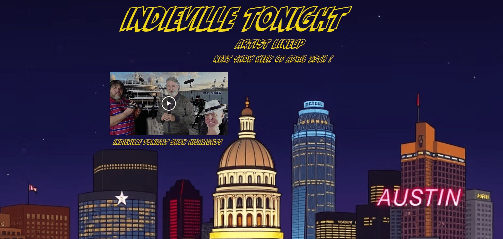 INDIEVILLE TONIGHT is primarily filmed on green screen and in the garage studio of Blossom Tree Communications in SW Austin!