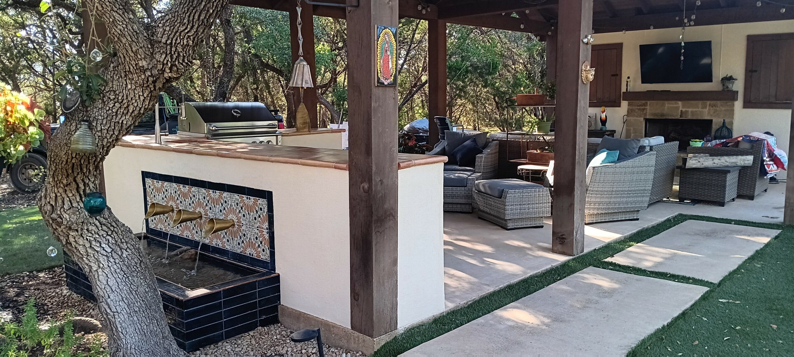 on framing crews, so; I when a good friend and I started up Mi Tierra construction it was like rolling out of bed. That good friends name is Arron Bevis from Uvalde Texas. He had the great idea , after being let go from employment at a local landscape company for lack of attendance, to make a road trip to get his old truck in Uvalde, drive it back, and start knocking on doors offering landscape installation services in the hill country. On our return voyage we stopped for a rest and had a conversation with an ol texas relic by the name of Billy Daniel’s. After sharing some jokes and aspersions over a lone stars’ Mr. Daniel’s shared his very adamant opinion that the flag of which our new path into the future would forge should read Mi Tierra. Returning back home with the 90’s model f150 we immediately started our ambitious plan. Thru many Blessings we were able to pay th minimal bills we had under the d.b.a of Mi Tierra custom landscape and design. Aaron soon left heading the call to manage a family farm, and I continued in and around the Hill country , building fences decks, pergolas, gardens, patios, & working with homeowners, learning the most needed aspect of business – transparent and honest communication. Being presented with opportunities which afforded educations in fence building, and timber framing, general masonry, Spanish and project management along with continually refining my personnel skills Mi Tierra clad continue to be a career. Gaining such knowledge in general framing and masonry thru acquaintances such as Steve Brewer (Guardian Fence) and the late great Niel Buie along with my beloved father Mike Brown, paved the path into what is now Mi Tierra custom homes. Steve’s knowledge of the structural engineering of proper/efficient fence building was honed from his native environment (houston) and it’s destructive storm patterns, necessitating the lightest possible structure, assembled in a fashion to support itself thru 90 mile per hour winds along with the needed load bearing engineering to ensure 20+ years of a straight, no-sag line of pickets and gates that continue to open smooth , a fashion you don’t see much outside of Houston for some reason. Niel was a very interesting character to say least, and I imagine there is a book or 2 with descriptive paragraphs about him. Let’s just say, they don’t make em like that anymore. Niels’ most famous work was the construction of the cabins and barns on the set of Texas classic – lonesome dove, in the final Montana scene when the remaining pioneers made the journeys end in. Learning the timber framing trade from Mr. Buie instructions instilled a much-needed foundational knowledge of structural engineering that has transcended to all facets of construction. Alongside the growth in framing’s multifaceted, niche my father Mike brown embraced a timely opportunity to pass down the mason’s lineage, which he forged through the late 70s and mid-eighties. His early endeavors left well-known legacies such as the entryway to camp Mabury on 35th along the ever-changing landscape of Austin. He and I worked hand in hand for a good part of a decade completing projects, which ,looking back, where nothing less than artwork. So, the beginning of that long story in Uvalde was around the year 01′ and up to 2011 Mi Tierra C.L.A.D began embracing re-modeling & new construction utilizing the education that had been given. Now in 2025 one can see examples of many projects ranging fro. simple atmosphere enhancements of backyards to the entire living development of an empty lot into a new dwelling at mi_tierra_construction or. Mitierrclad.com along with a number of satisfied customers’ testimonies.