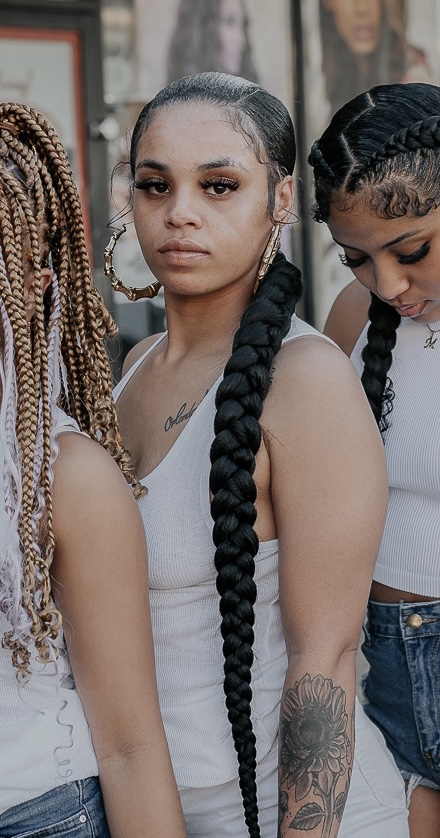 I am so grateful for the opportunity to share my journey. It starts when I was 14 years old, I grew up watching my mother do hair. My grandmother cut and styled hair. And my father also cuts hair as a barber. My mother went to prison when I was 10, so I grew up with my father he has 6 daughters, me being the oldest I did my little sister’s hair very often and my grandma did mine. I watched and learned from my grandmother and began to get into braiding my own hair cause she told me, “I won’t always be here to do your hair forever. You’ll have to learn yourself.” I was very close to my grandma so I was always under her watching and learning. When she passed away in 2020 from stage 4 stomach cancer, I knew I was next in line. As I began to get more into it, my popularity grew and I started to realize braiding is a given talent that turned into passion.