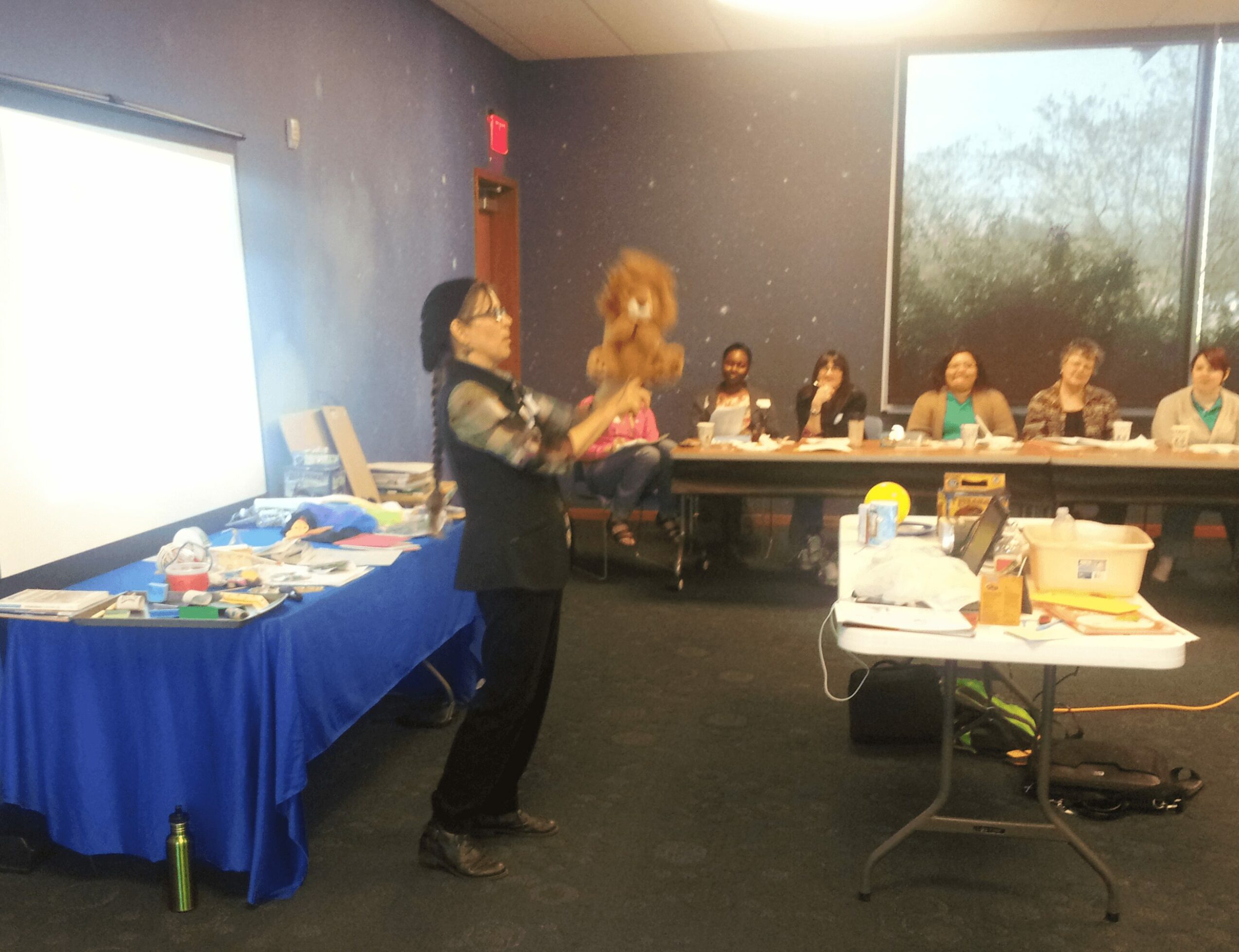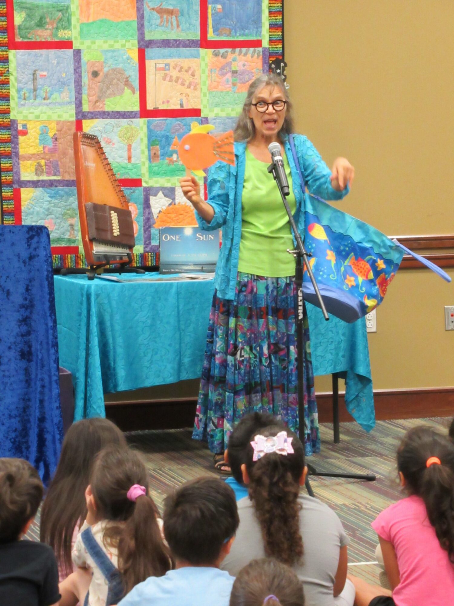 I love sharing my experience and ideas with librarians, teachers and parents. I’ve presented workshops from El Paso to Houston and Dallas to the Rio Grande Valley. Some popular topics include using music, storytelling, puppets, art, poetry, and literature with children. Over the years, I have had the privilege of working with the Texas State Library to produce forty videos with ideas to support youth programming in libraries. A highlight for me was working as a youth consultant for rural libraries all over Texas.