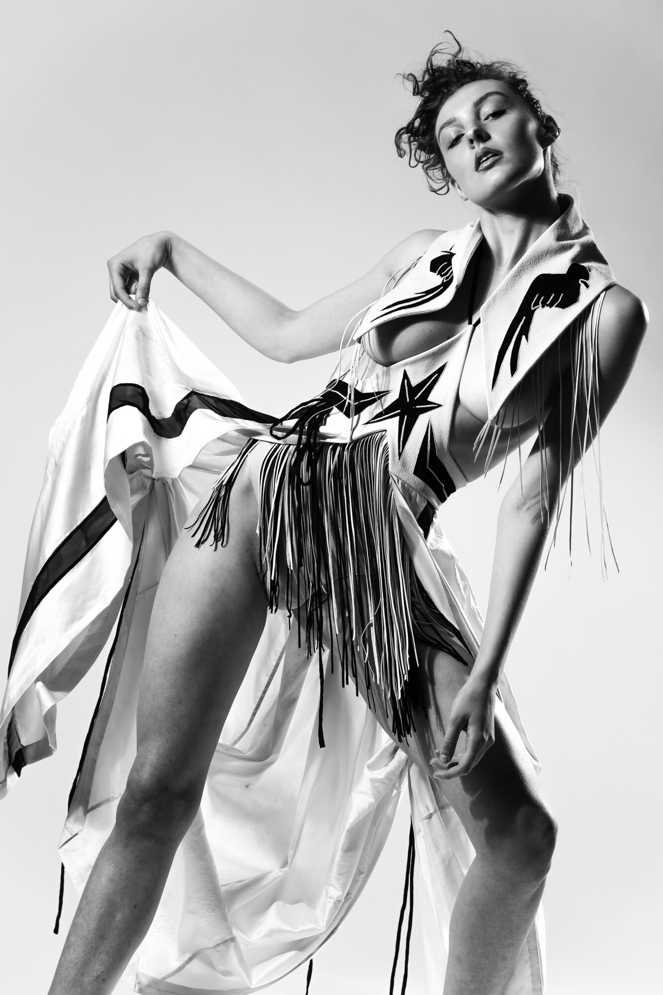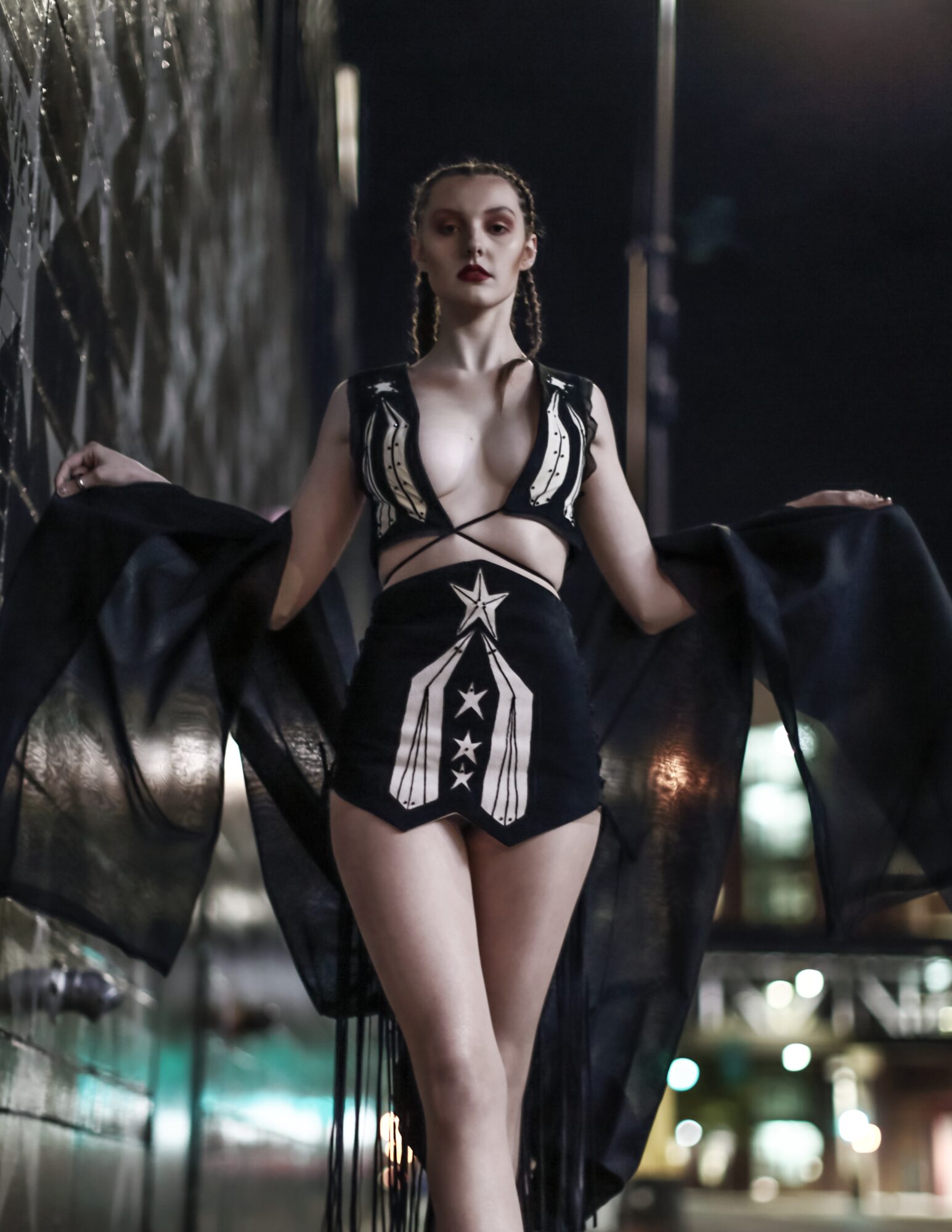 I grew up in a very unenlightened and depressing German Catholic rural area and was raised in a home characterized by alcoholism, abuse, and chaos so I was very lost as a young, empathic, sensitive, and creative person. My childhood dream was to learn how to sew and have a design brand, but with my background, I didn’t have the tools to do that at the time. I went on to become a young single mom, and life was about survival and getting by as a mother of two in my twenties and early thirties. In 2012 I had a terrifying and life-altering near-death experience, and I found that I was forever changed and entered a journey of healing, metamorphosis, and spiritual awakening. I felt guided and compelled to go to school to learn how to make patterns and sew even though that was not a practical thing to do as a single mother without even having stable living conditions at the time. But to my surprise, it was as I tapped into my creativity, that opened up for me a whole new world of this higher level of guidance, trust and spiritual understanding where I would receive visions and inspiration to create collections. It was very challenging a required a lot of financial risks and hard work, but each collection attracted to me a new opportunity. By now I have showed collections for NYFW and have shown my work internationally for London Fashion Week as well as digital Milan Fashion Week, and globally for IDFW (International Digital Fashion Week). I have also had collections broadcasted in Singapore and China for ASEAN International Digital Fashion week. The work that I do is shamanic in nature where symbols and power animals come to me in vision and waking life. The process continues to perplex me, but as an artist and healer the work is about answering to the call and it brings me fulfillment as I live my soul purpose, and I am incredibly grateful for these experiences.