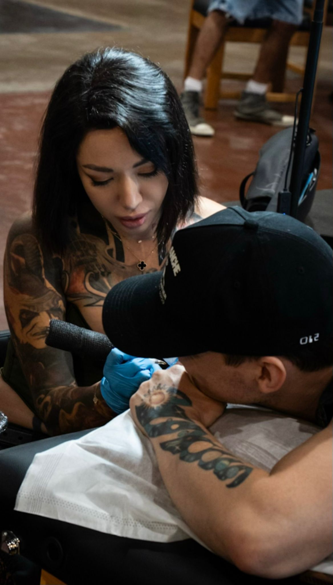 My days are usually lacking routine but currently I mostly wake up at 10 am, get breakfast, take care of my bearded dragon, go to my studio, spend some time teaching my apprentices, checking how things are there, taking care of another dragon in there 😄 making a couple consultations, working with a videographer on some fun content, tattooing a full day, mostly full sleeves or other big projects so I either outline and plan everything out or I continue some work. After tattooing for about 6 hours I go to the gym if I have the time, otherwise take off for a date, because eroticism is something that is my main artistic fuel;)