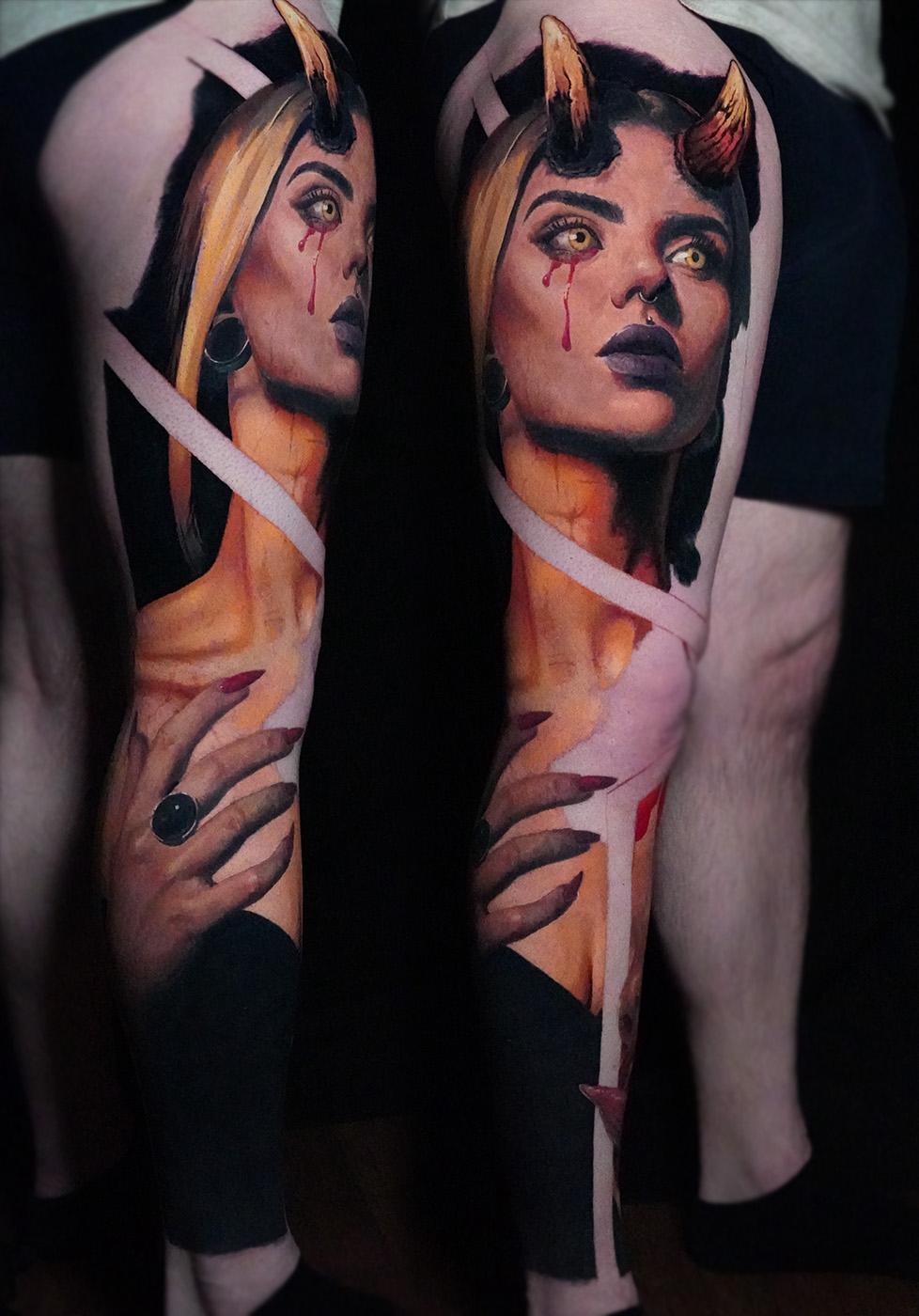 I am an artist that was classically trained in Russia and thanks to my early achievements in art industry I conquered tattooing within basically a year, won world recognition with being the only artist in the world able to tattoo a color portrait from life observation of a model, not using any photo or stencil. I also made the only known to the world self tattoo portrait using a mirror as a reference. I ve lived and worked and studied in Europe US and Russia. Recently I ve moved from New York to Austin and opened my tattoo studio “sharp objects “ and my tattoo school “Obscythe”. It’s a 6-months long program that has a unique program that is interactive and is happening in real time. My passion is painting, sculpting, Shibari (rope kinky art from Japan), teaching, languages (i understand 7), tattooing etc. I’m pretty restless 😄